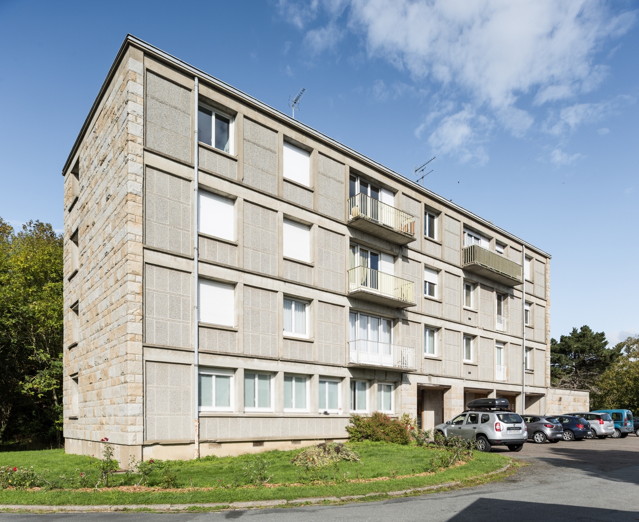 Façade sud des logements. Louis Arretche, architecte.Immatriculation