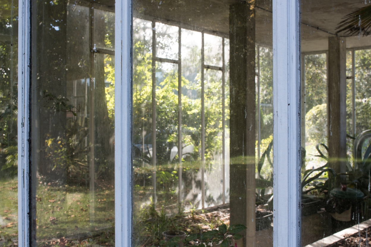 Serre mitoyenne, au sud de la malouinière : détail. Noter la structure en béton.Immatriculation
