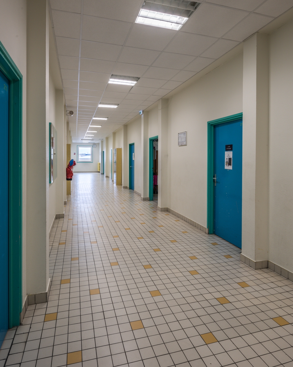 Dégagement de l'externat. Les classes sont distribué par un couloir central.Immatriculation