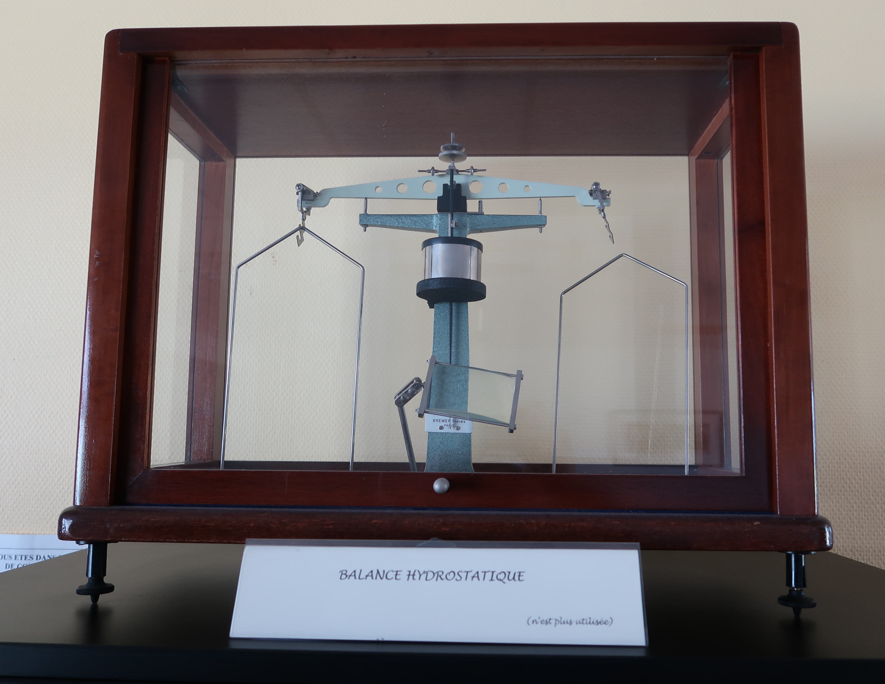 Élément des collections de sciences physiques, exposé dans la salle du conseil d’administration : balance hydrostatique.Immatriculation