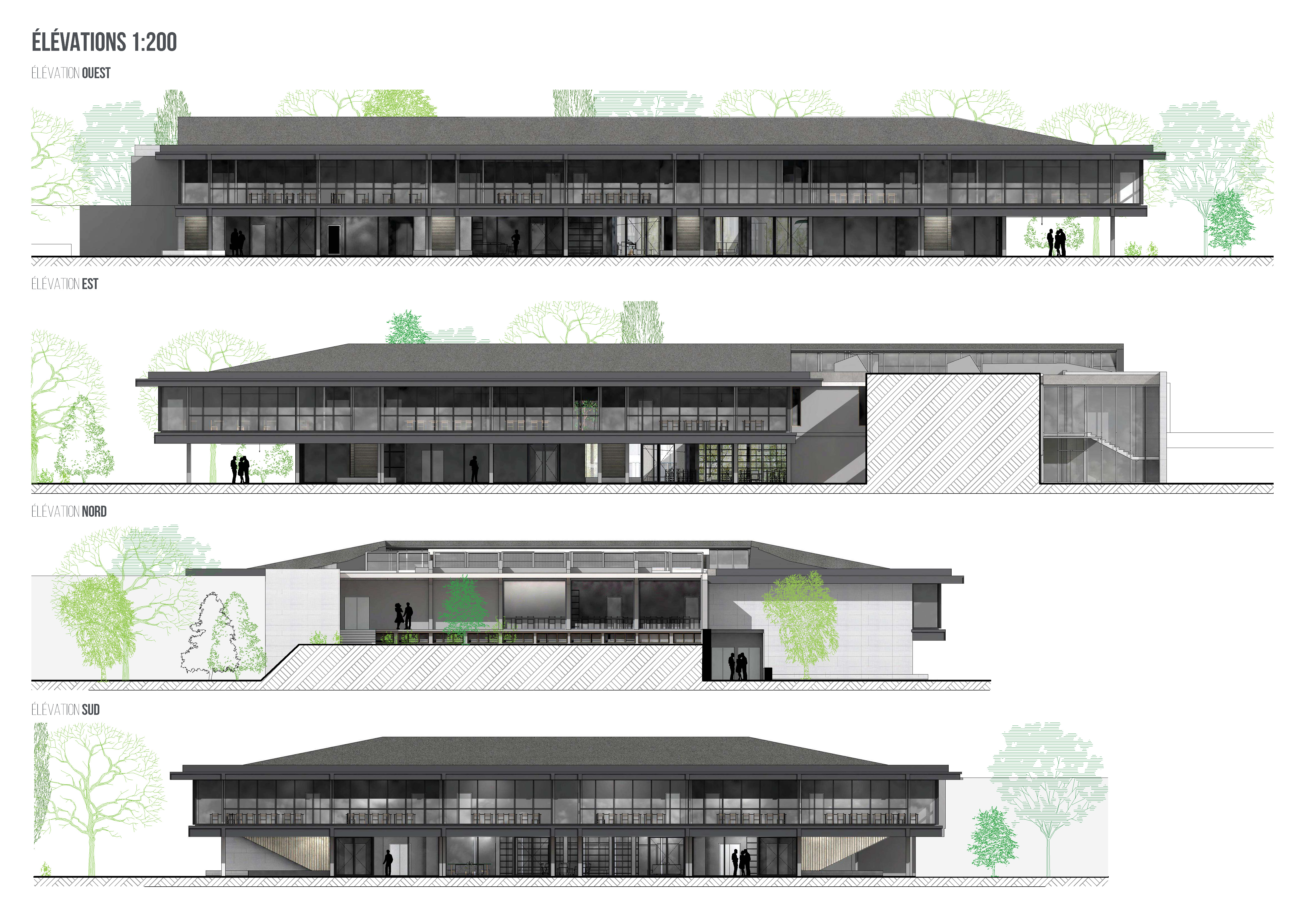 Projet de réhabilitation du réfectoire. Groupe Legendre, Anthracite 2.0 (architectes). Elévations.Immatriculation