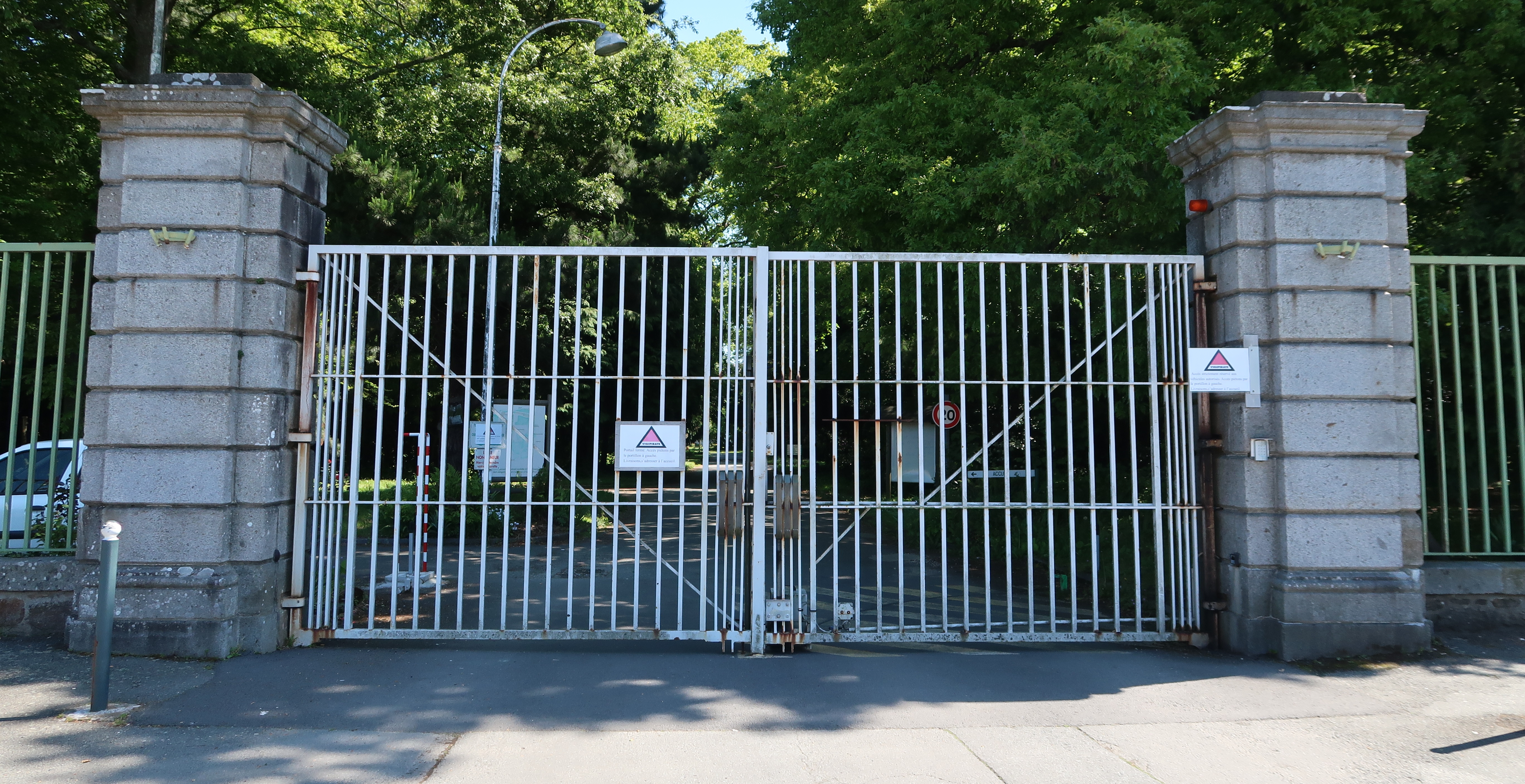 Portail de l'entrée principale. Raymond Subes, décorateur. Fer forgé.Immatriculation