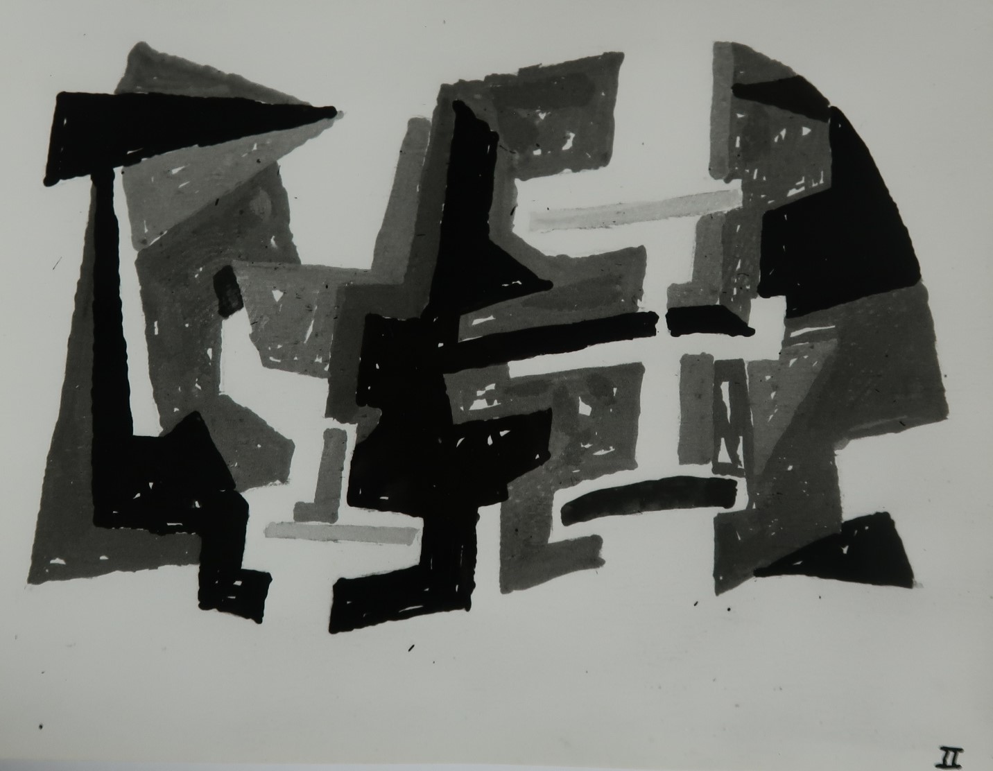 "Variation numéro II (vert bleu jaune rouge noir)", maquette de décor mural (non réalisé) par J. Durand-Henriot, ca 1968.Immatriculation