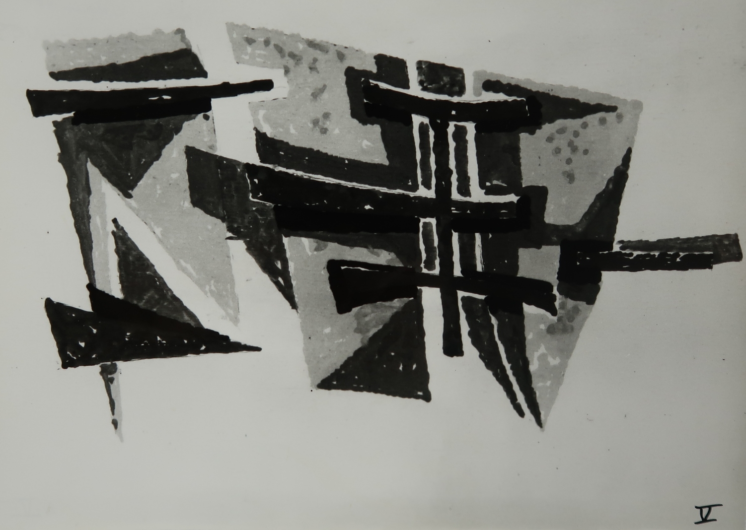 "Variation numéro V (outremer bl colbalt clair rouge vert noir)", maquette de décor mural (non réalisé) par J. Durand-Henriot, ca 1968.Immatriculation