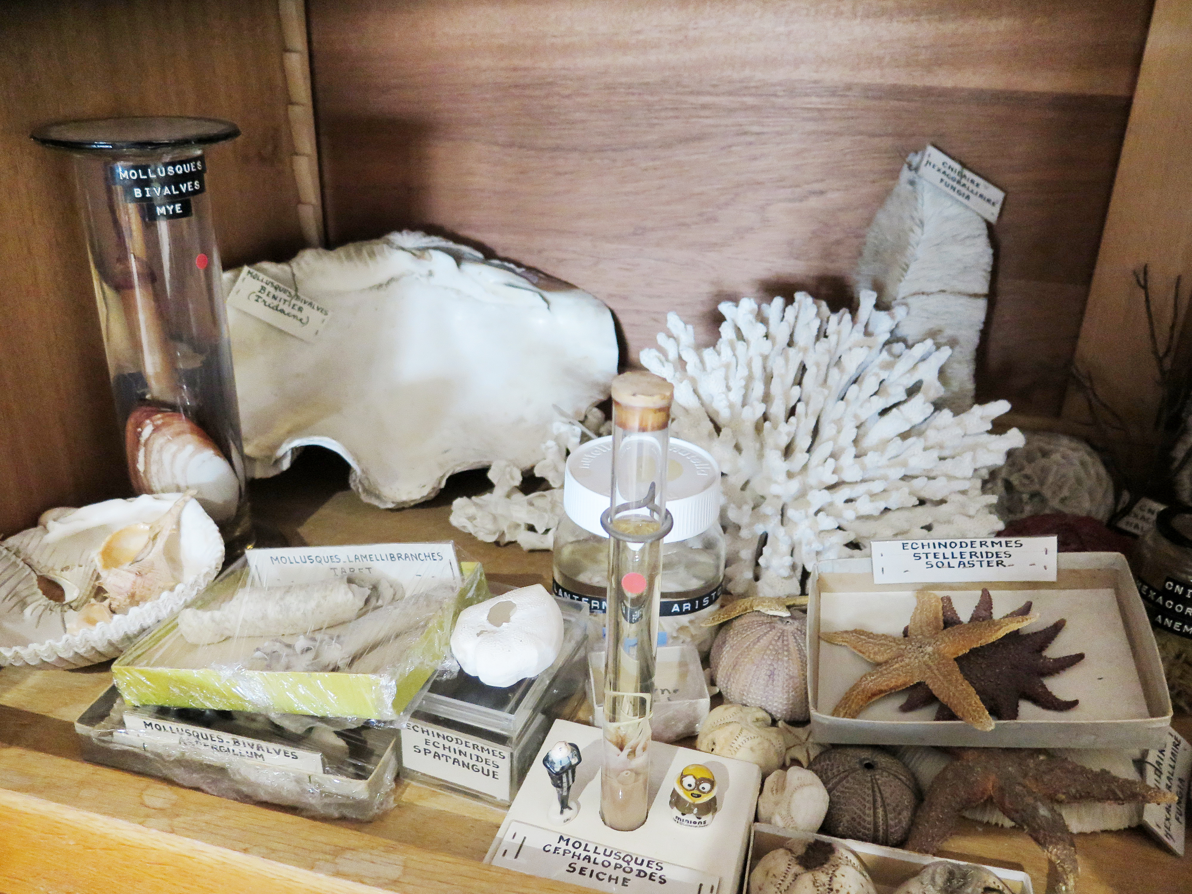 Vue d'ensemble d'une partie de la collection de zoologie (embranchements des échinodermes et des mollusques)Immatriculation