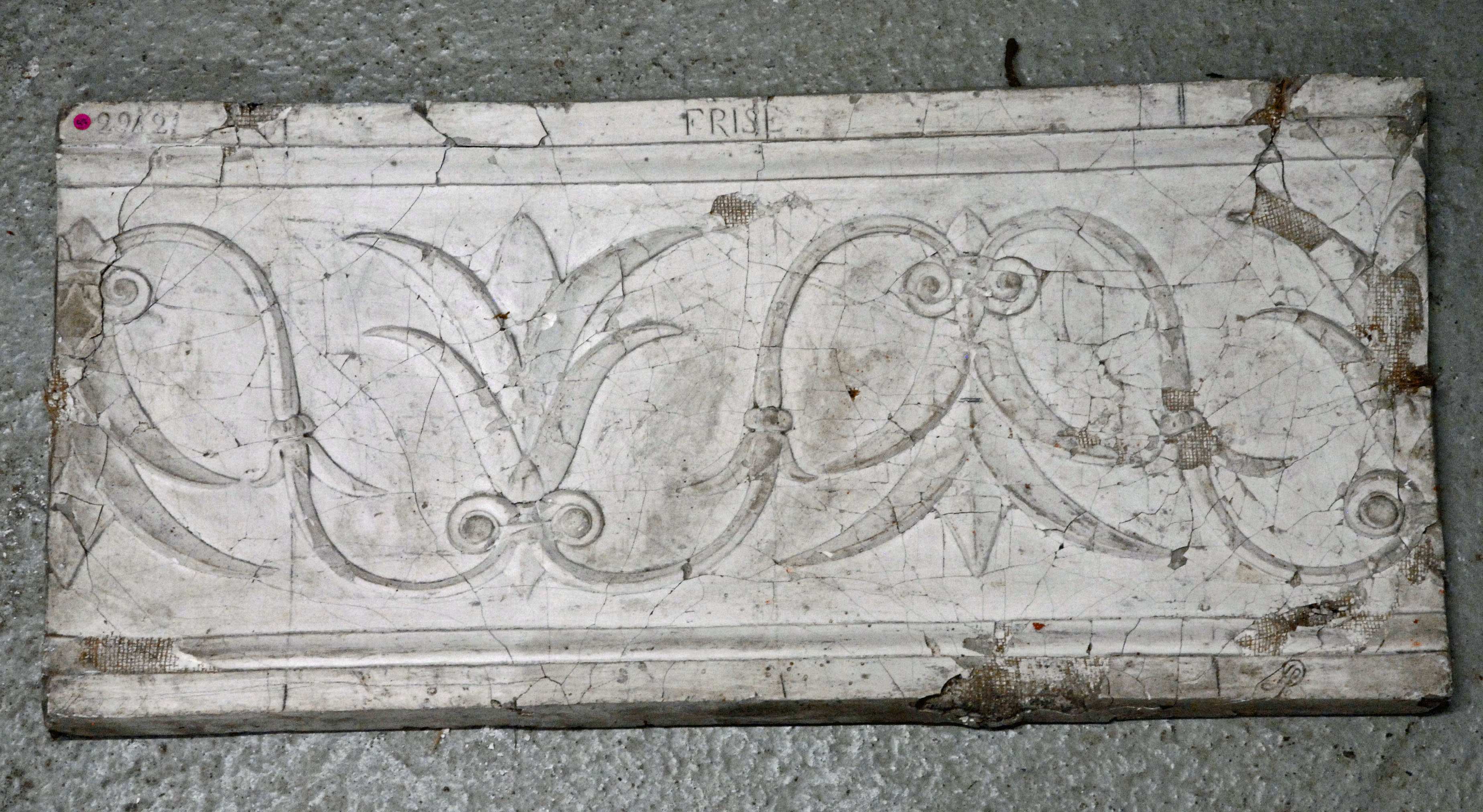 Frise avec palmettes et culots restaurée par M. Dutert. Original conservé à l’École nationale des Beaux-arts de Paris. Atelier Desachy, pour le compte de l'École nationale des Beaux-arts (cat. vente n°2942).