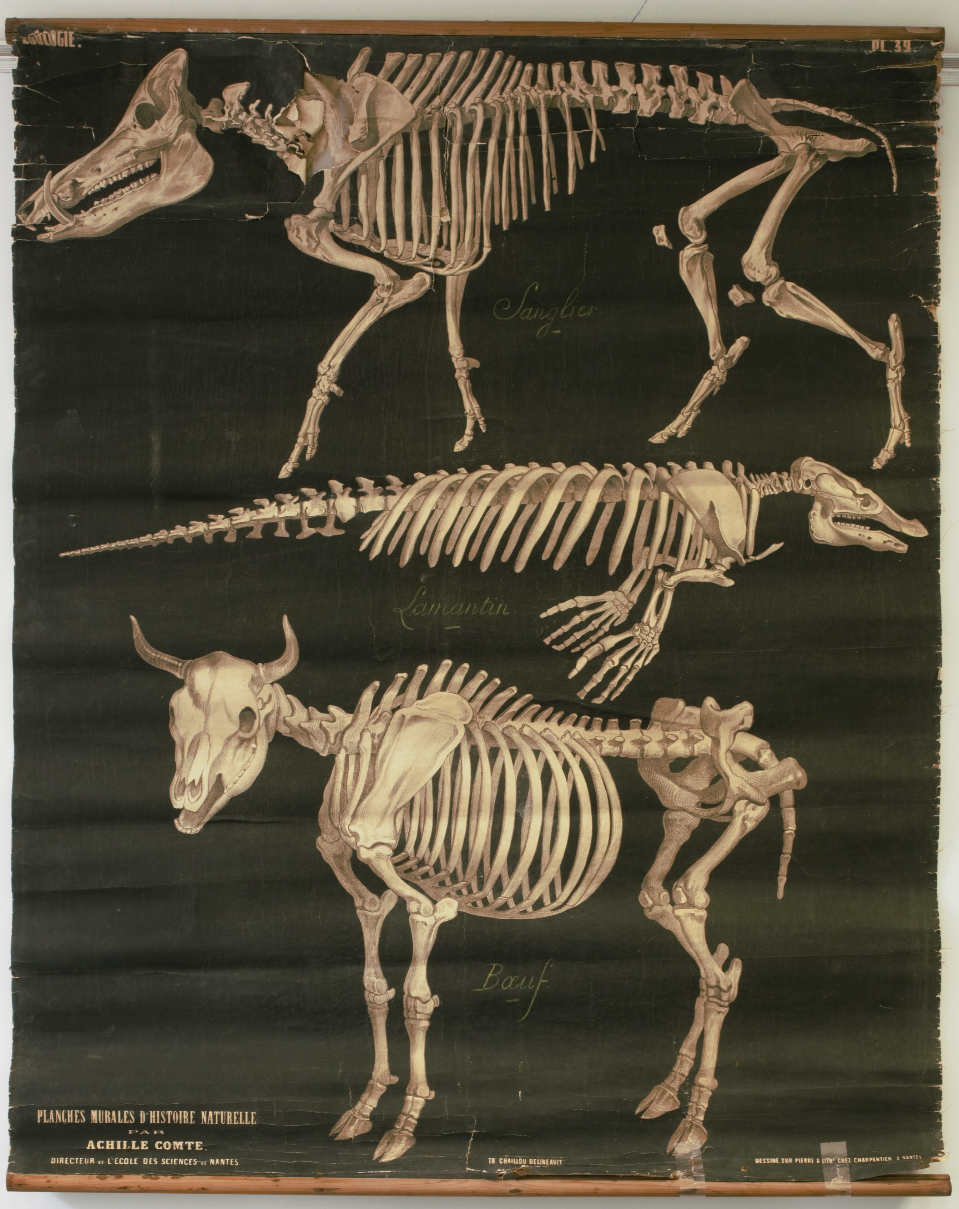 Squelettes de mammifères (sanglier, lamantin d'Amérique et bœuf) - Collection de planches pédagogiques (Achille Comte, 1862-1864)Immatriculation