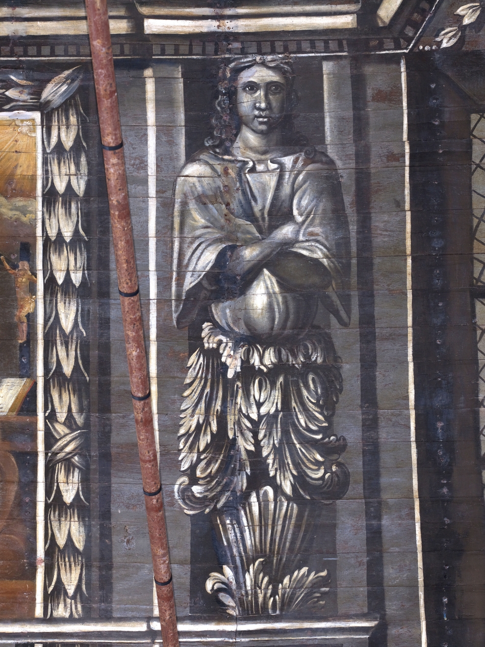 Représentation d'une carariatide de la voute de la nefImmatriculation