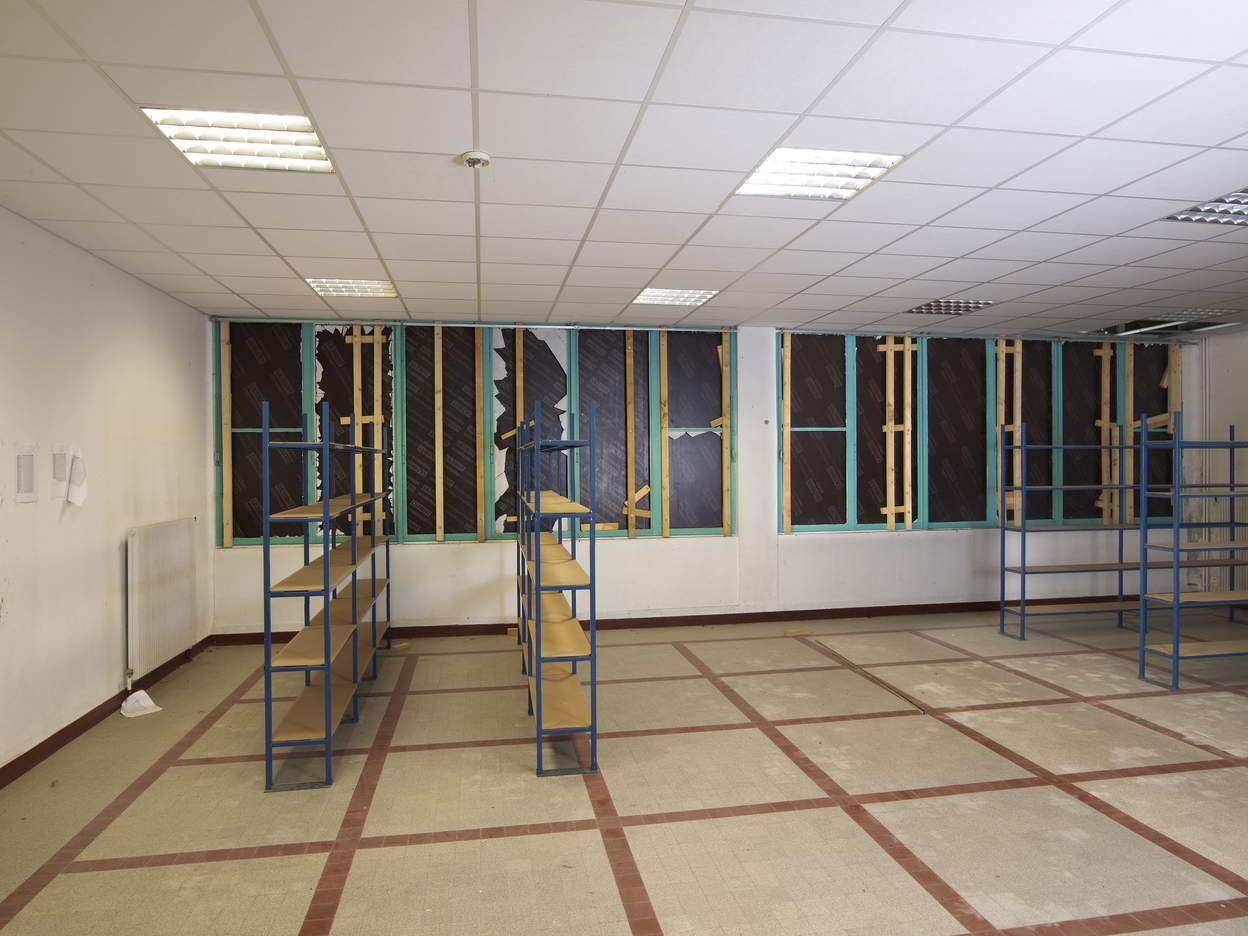 Salle d'étude, internat de garçons, rez-de-chaussée (1954) désaffecté.Immatriculation