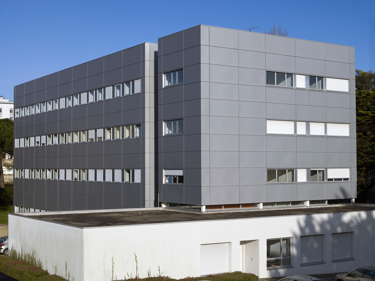 Internat garçons n°2, réhabilité (isolation extérieure, adjonction de l'aile au premier plan, Thierry Loison architecte).Immatriculation