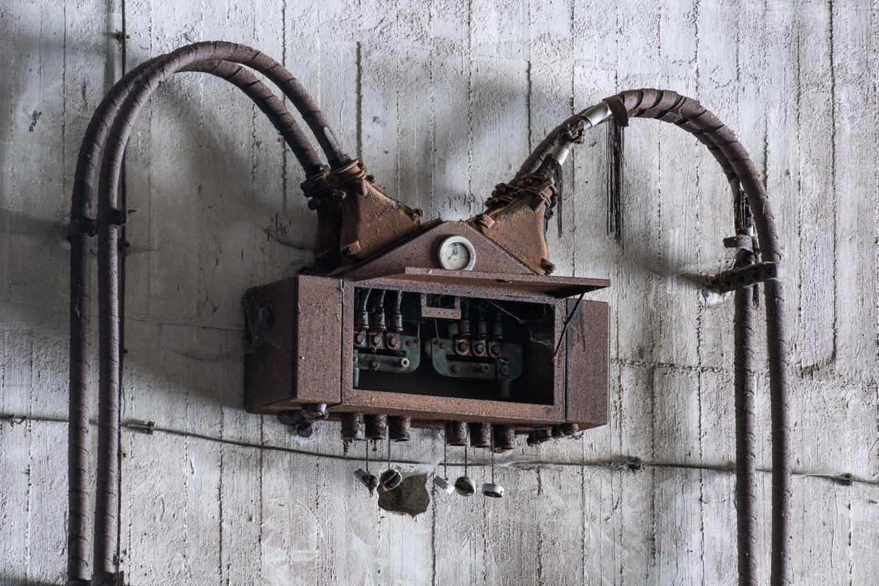 Vue d'un boîtier de connexion électrique avec voltmètre (quatre arrivées de câble pour six sorties)Immatriculation