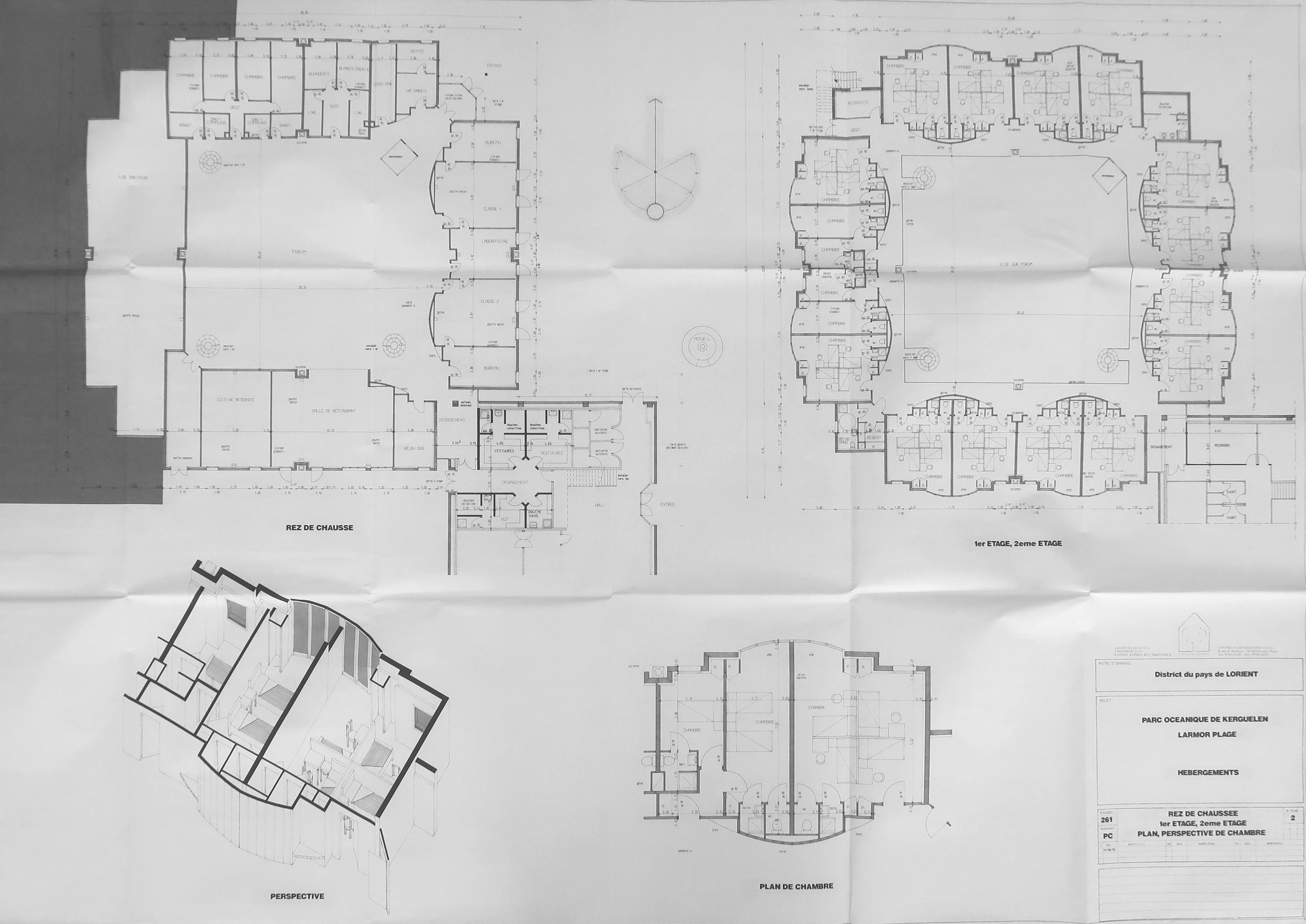AC Lorient : 38 Z 25. Plans et perspective de chambre. P. Pincemaille, 1992.