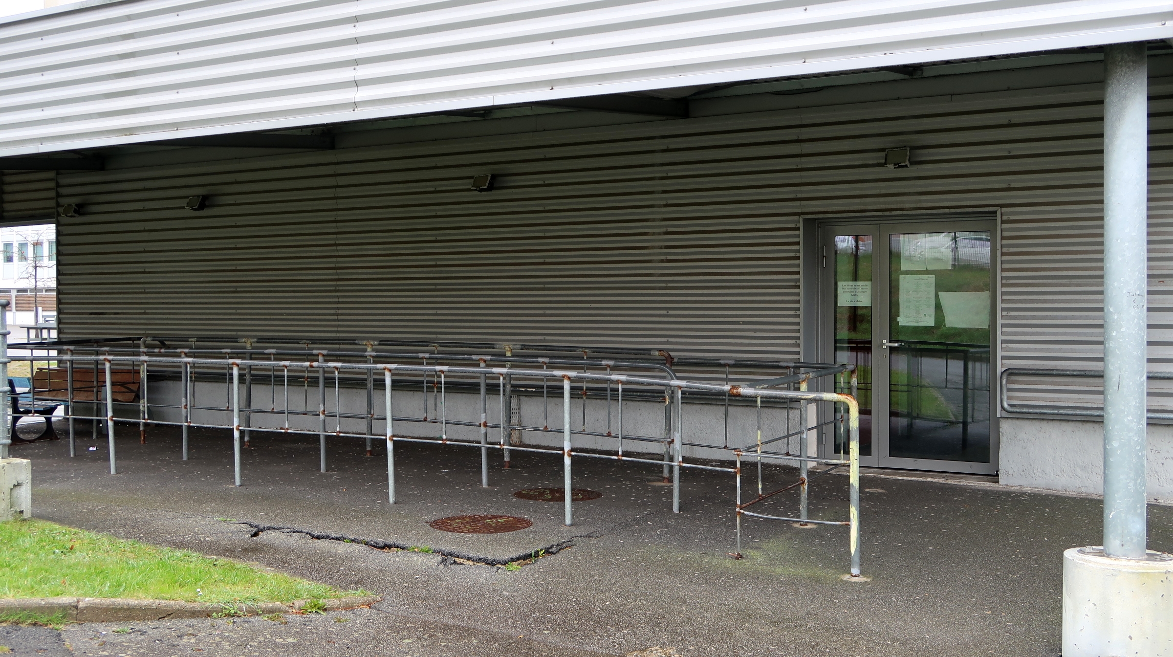 Espace d'attente du réfectoire, bâtiment B, pignon sud-est.Immatriculation