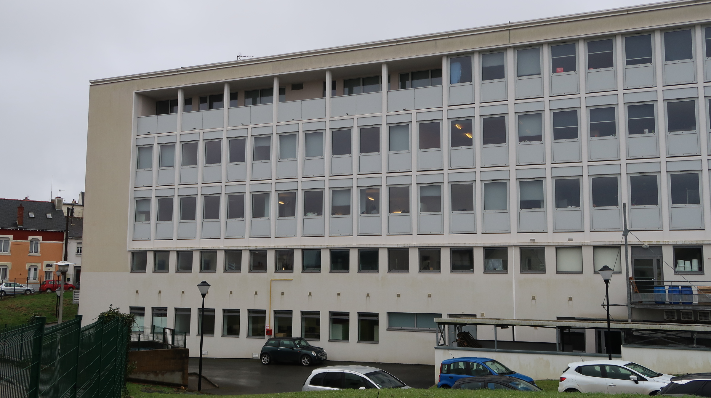 Bâtiment B, façade nord-est : externat, internat, restauration. au dernier étage, anciens logements de fonction.Immatriculation