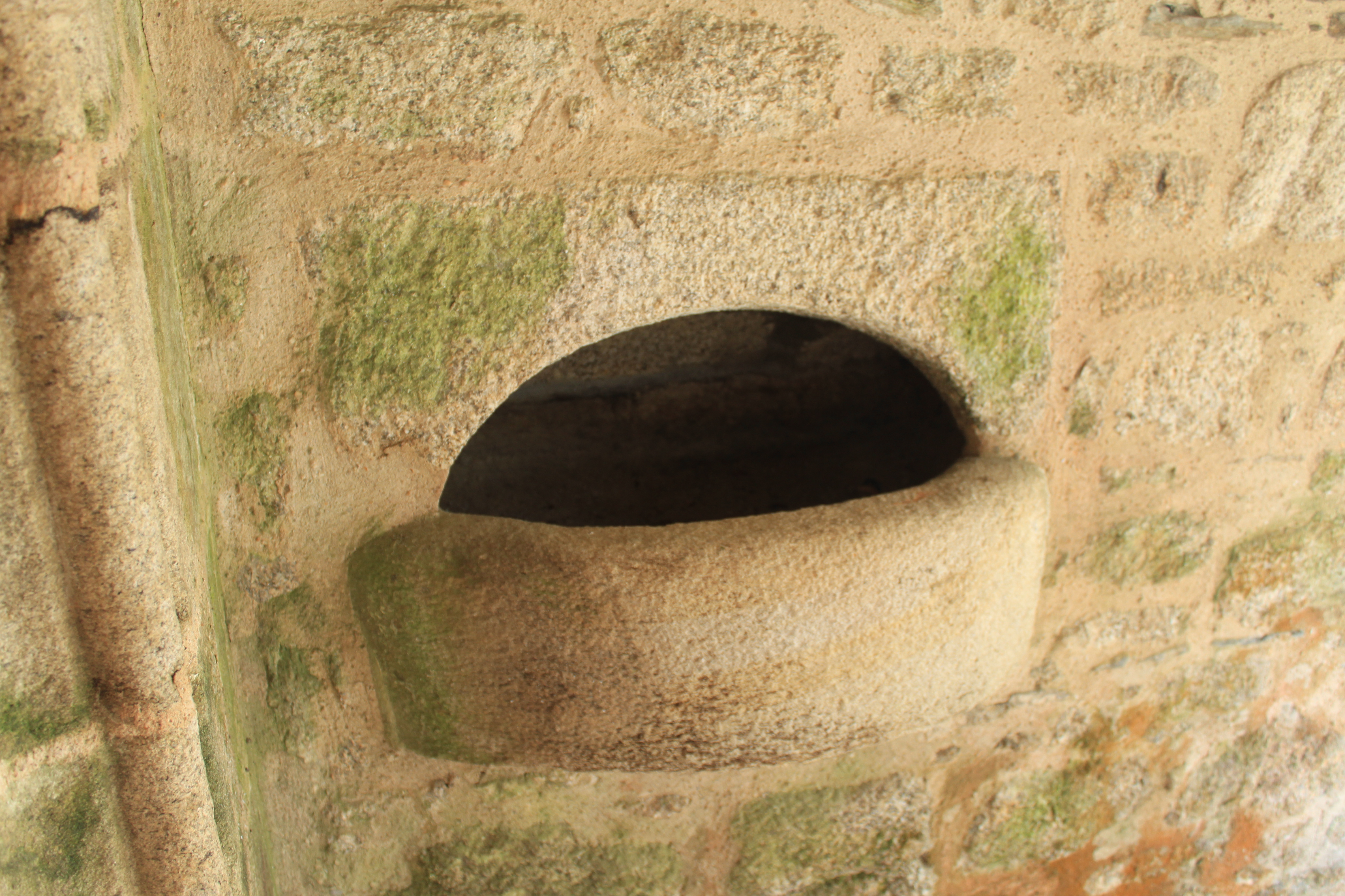 Eglise Saint-Mériadec de Stival, Pontivy, bénitier du porche sud.Immatriculation