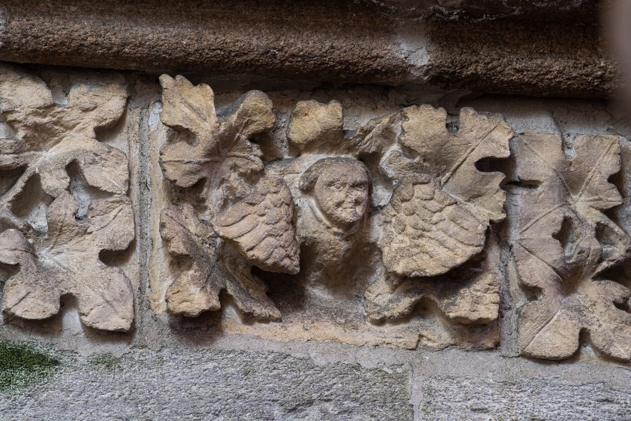 Détail de la frise sculptée en calcaire soulignant le triforiumImmatriculation