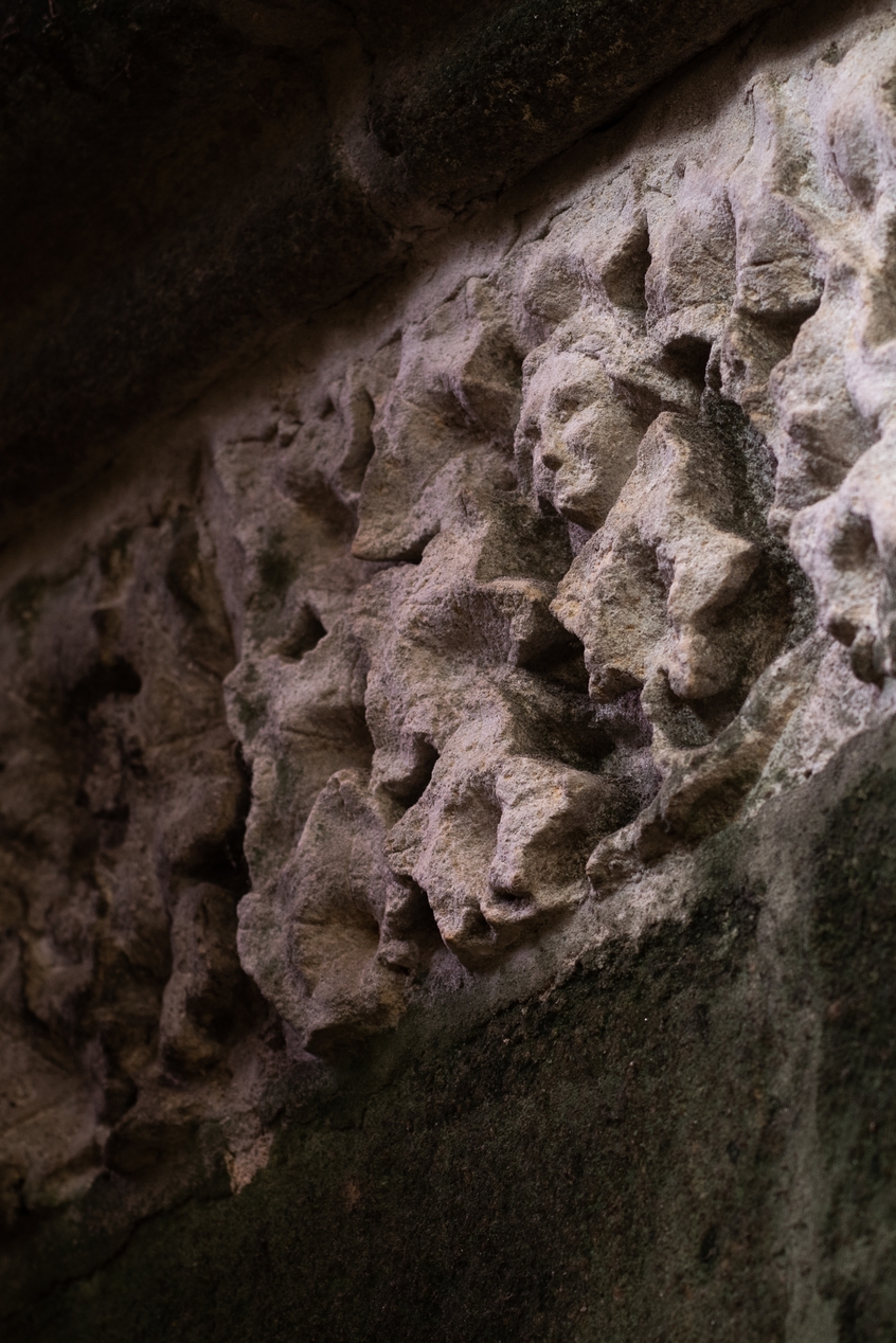Détail de la frise sculptée en calcaire soulignant le triforiumImmatriculation