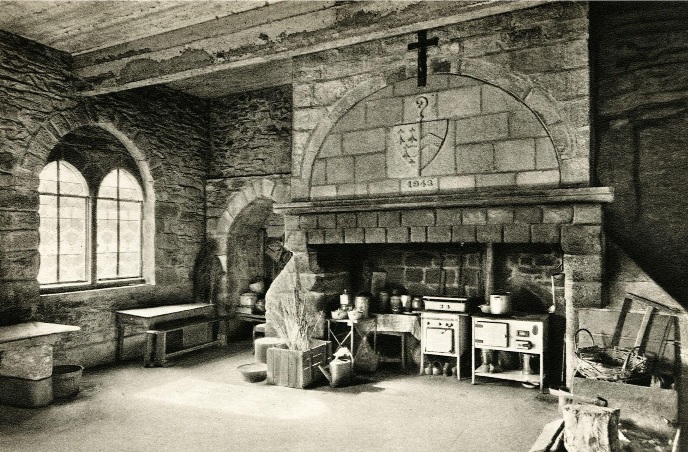 Cheminée monumentale, en partie reconstruite en 1943, dans l'ancienne cuisine des moinesImmatriculation