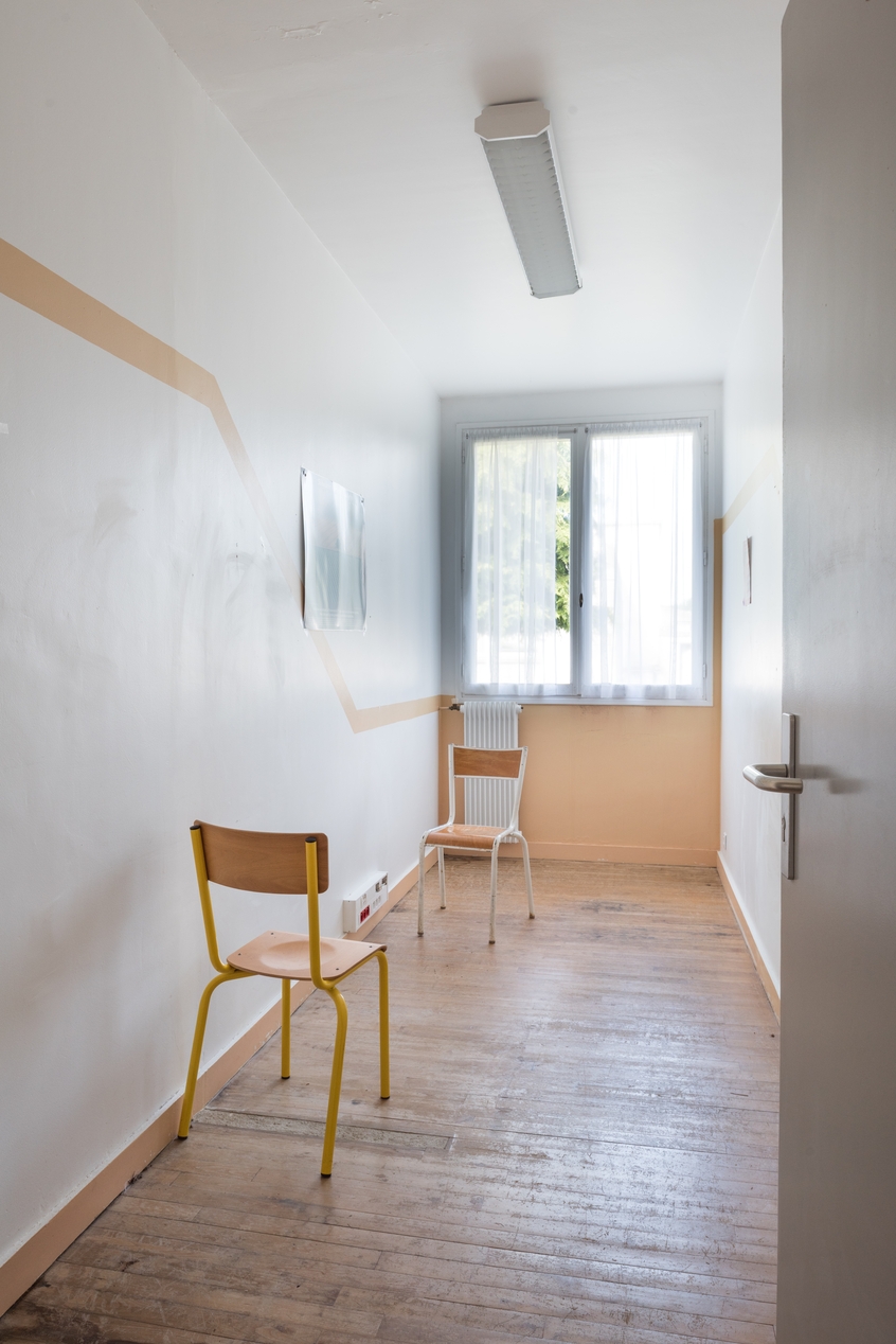 Chambre individuelle, transformée en bureau ou salle d'attente.Immatriculation