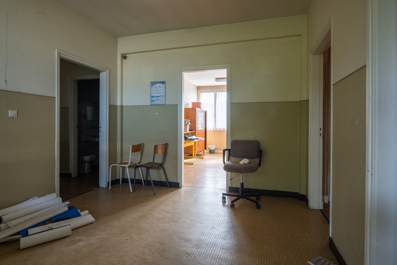 Palier du 1er étage : dans l'axe, la salle de garde.Immatriculation