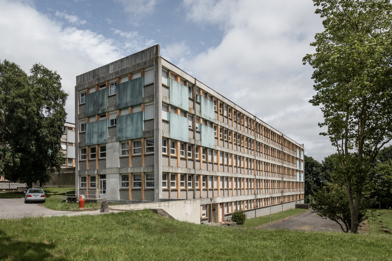 Internat des filles, vue d'ensemble prise du sud-ouest. Péron et Weisbein, architectes, 1967-1968.Immatriculation