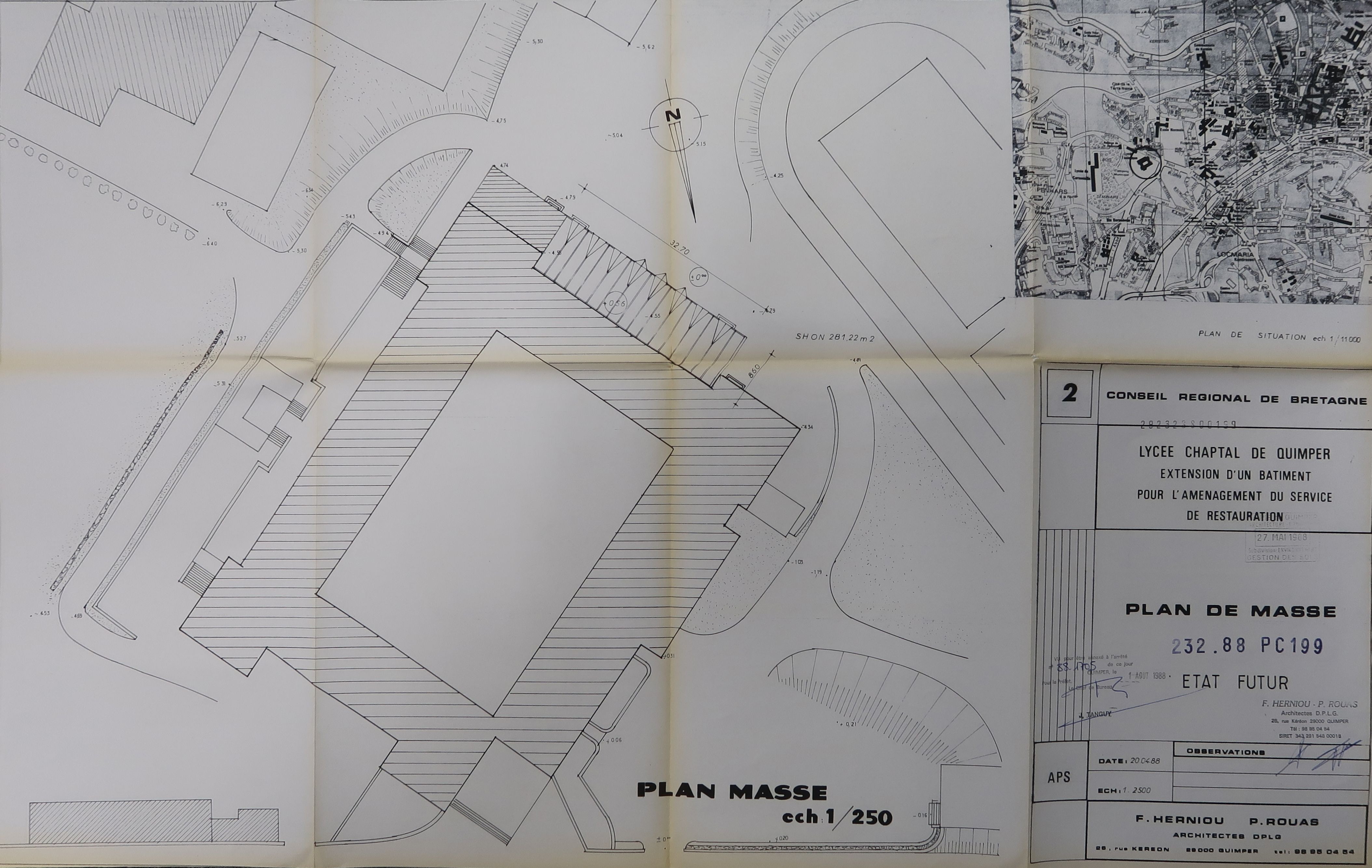 Région Bretagne (Service des archives) : Région Bretagne (Service des archives). Herniou [F.] et Rouas [P.], Extension réfectoire, 1988