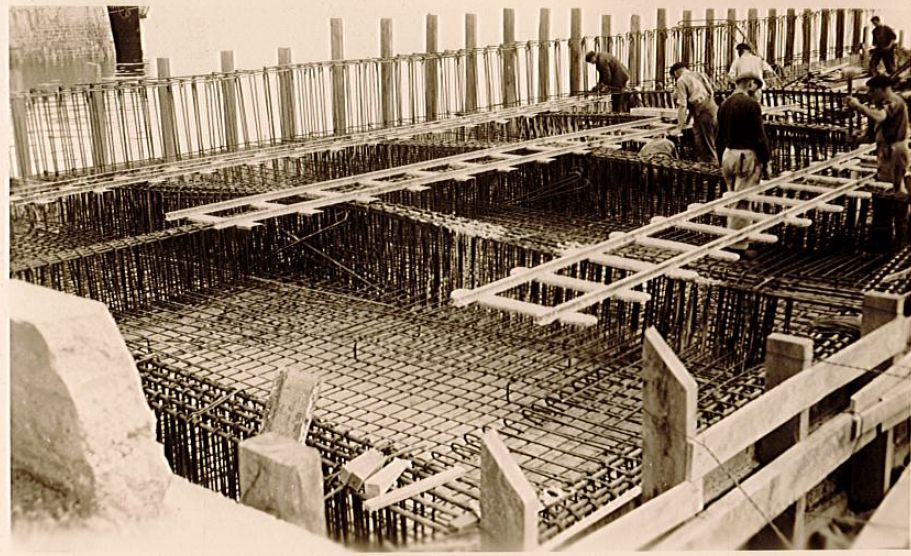 Photographie de suivi de chantier, ferraillage de la dalle du quai ouest ; coffrageImmatriculation