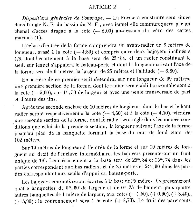 Cahier des charges pour la construction d'une forme de radoub au port de Brest, article 2 (extrait)Immatriculation