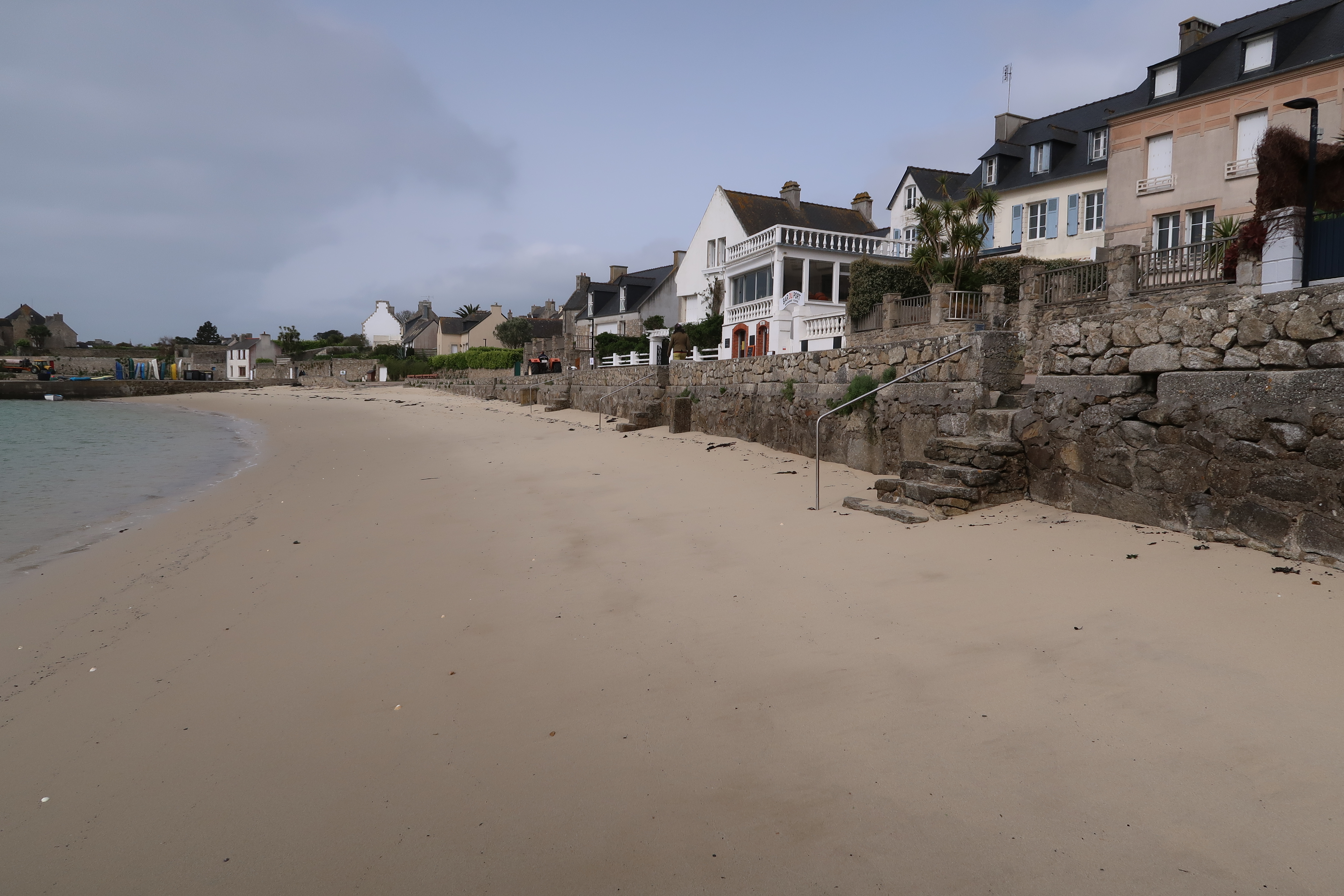 Haut de plage de Porz Kernog, murs de soutènement et escaliers d'accèsImmatriculation