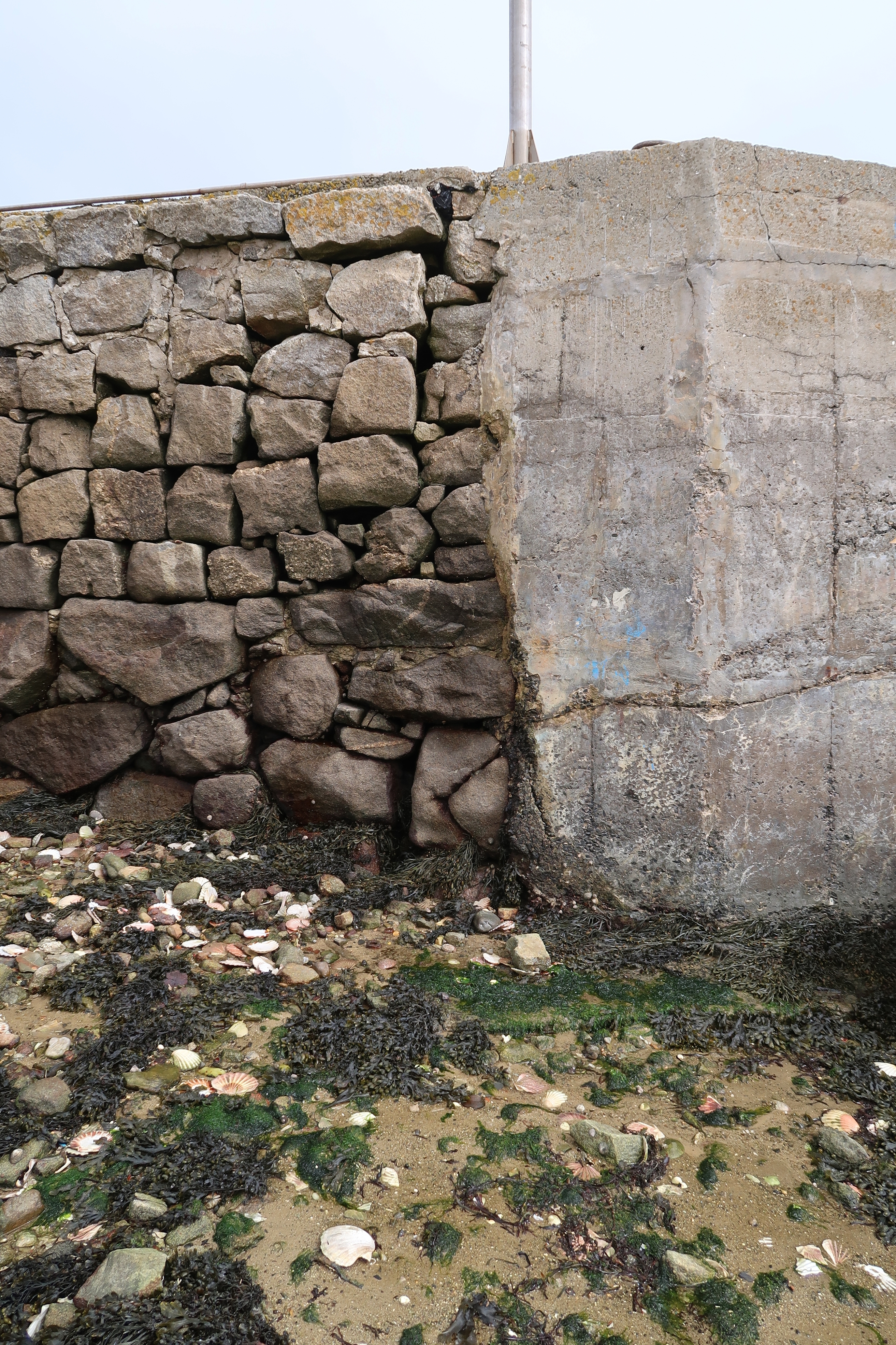 Cale de Porz Kernog, détail de la mise en oeuvre : mise en oeuvre pierres-sèches et bétonImmatriculation