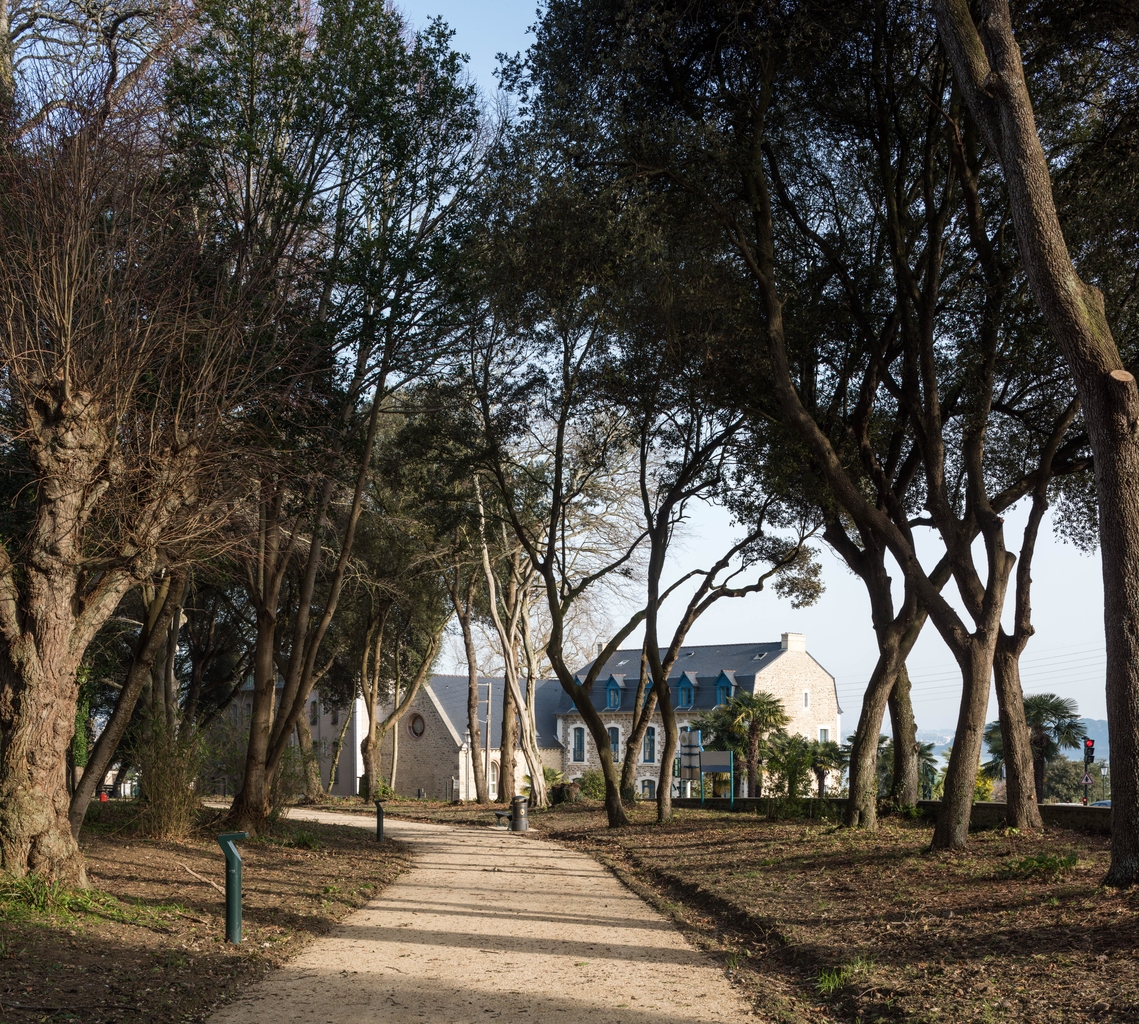 Contexte urbain et paysager : parc arboré des trois villas du 19e siècle, villas de l'autre côté du boulevard des Maréchaux et allée piétonne le long du Boulevard, sur l'emprise du lycée.Immatriculation