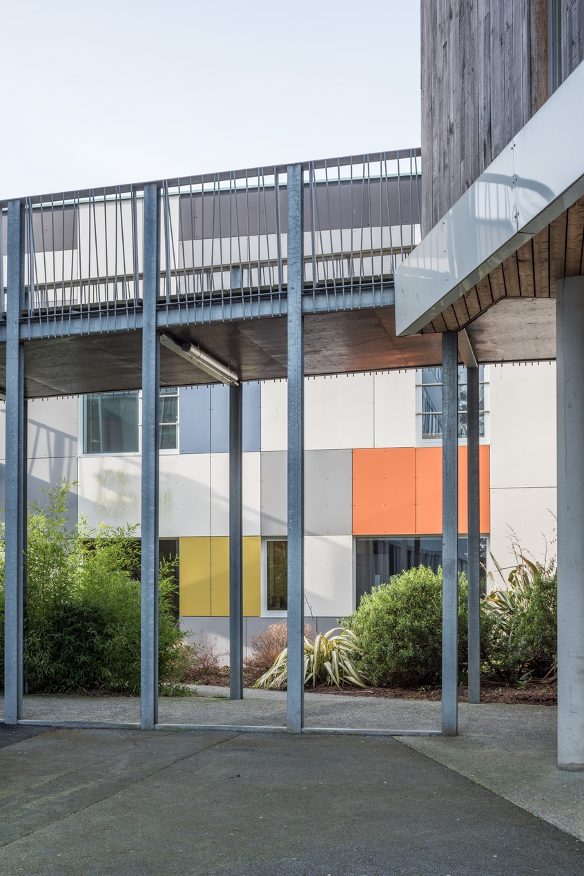 Façade est du CDI, prise sous la passerelle. Thierry Soquet, architecte, 2012.Immatriculation