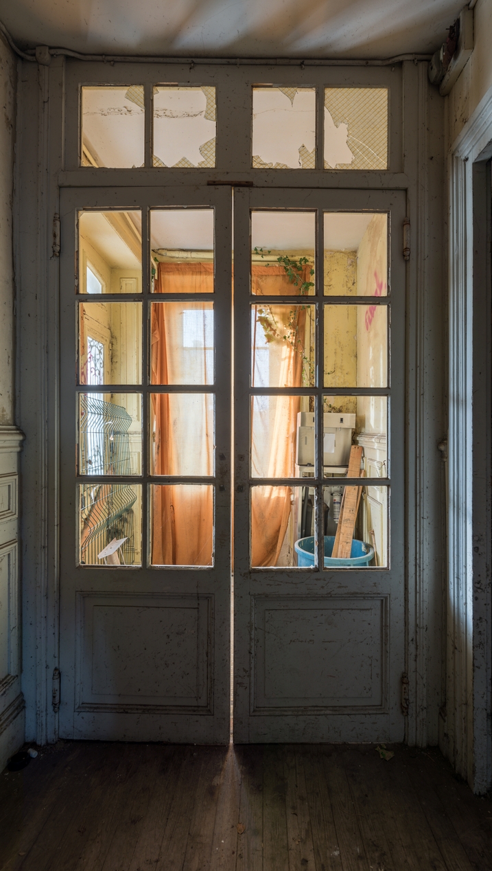 Porte intérieure vitrée avec imposte.Immatriculation