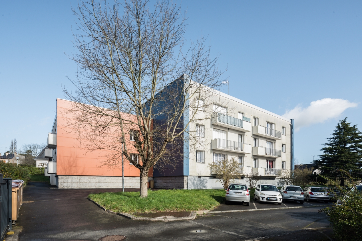 Vue d'ensemble des logements, prise du sud (Albert Hec et Roger Besnard, architectes, 1966).Immatriculation