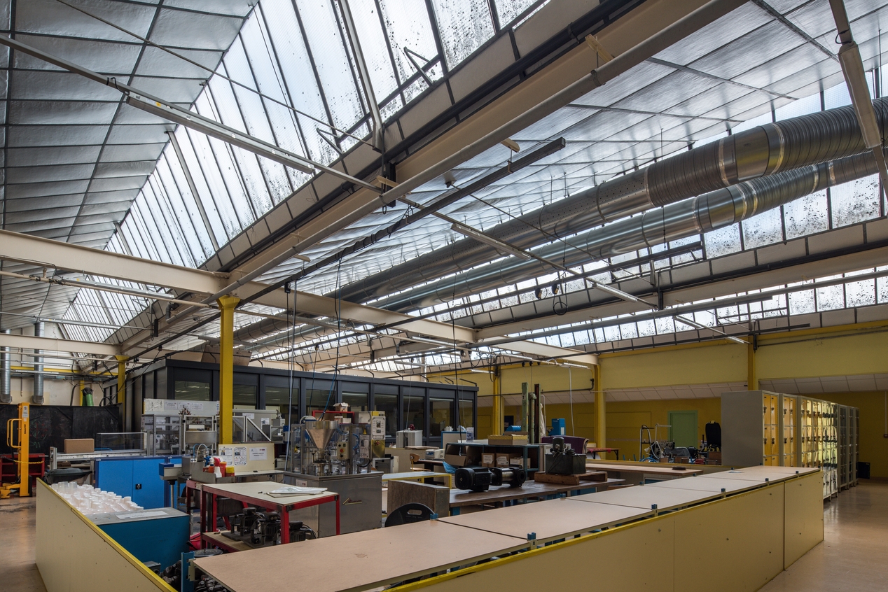 Bâtiment G, Ateliers sous sheds, vue intérieure.Immatriculation