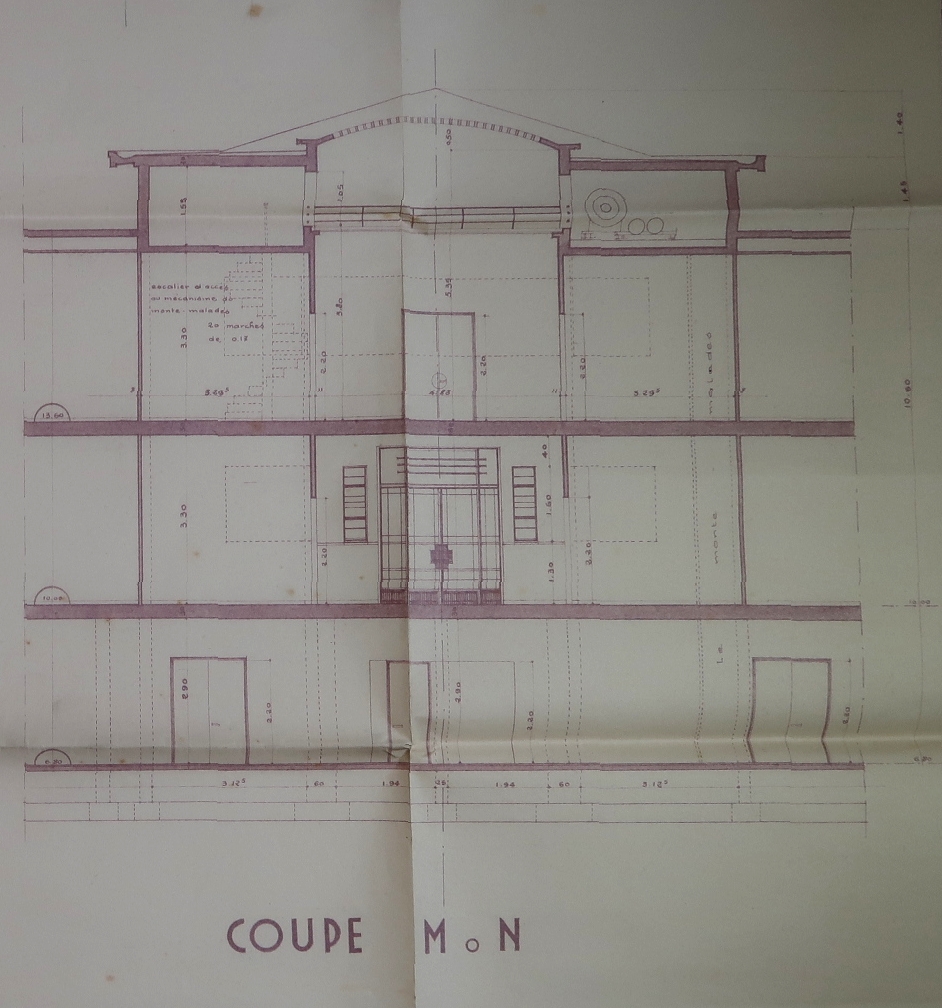 Coupe dans l'axe du chevet. Albert Hec, architecte, 1936.Immatriculation