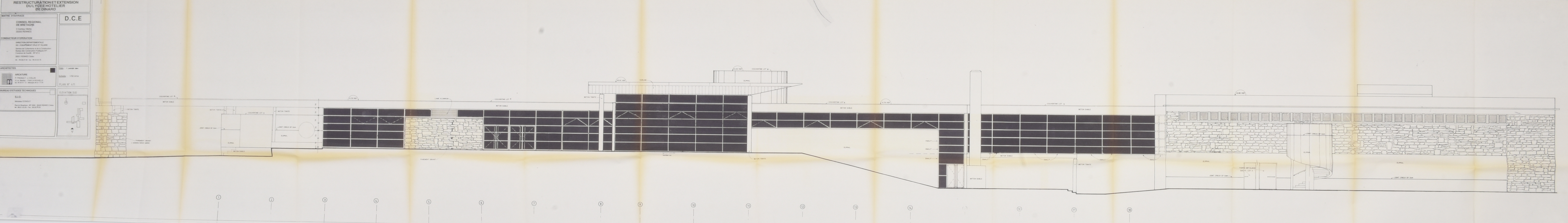 Restaurant pédagogique : élévation sud. Pierre Pacault et Jacques Colin, architectes, 1994.Immatriculation