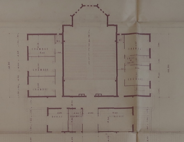 Plan de la chapelle, 1er étage. Albert Hec, architecte, 1936.Immatriculation