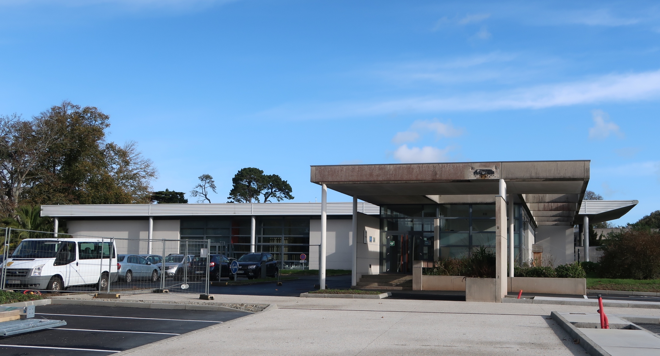 Façade ouest du restaurant pédagogique et salle polyvalente.Immatriculation