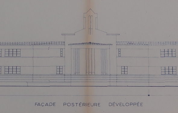 Façades et coupes de l'état existant : détail. Albert Hec et Roger Besnard, architectes, 25/3/1966. Cette élévation est issue de la reconstruction d'après la Seconde Guerre mondiale.Immatriculation