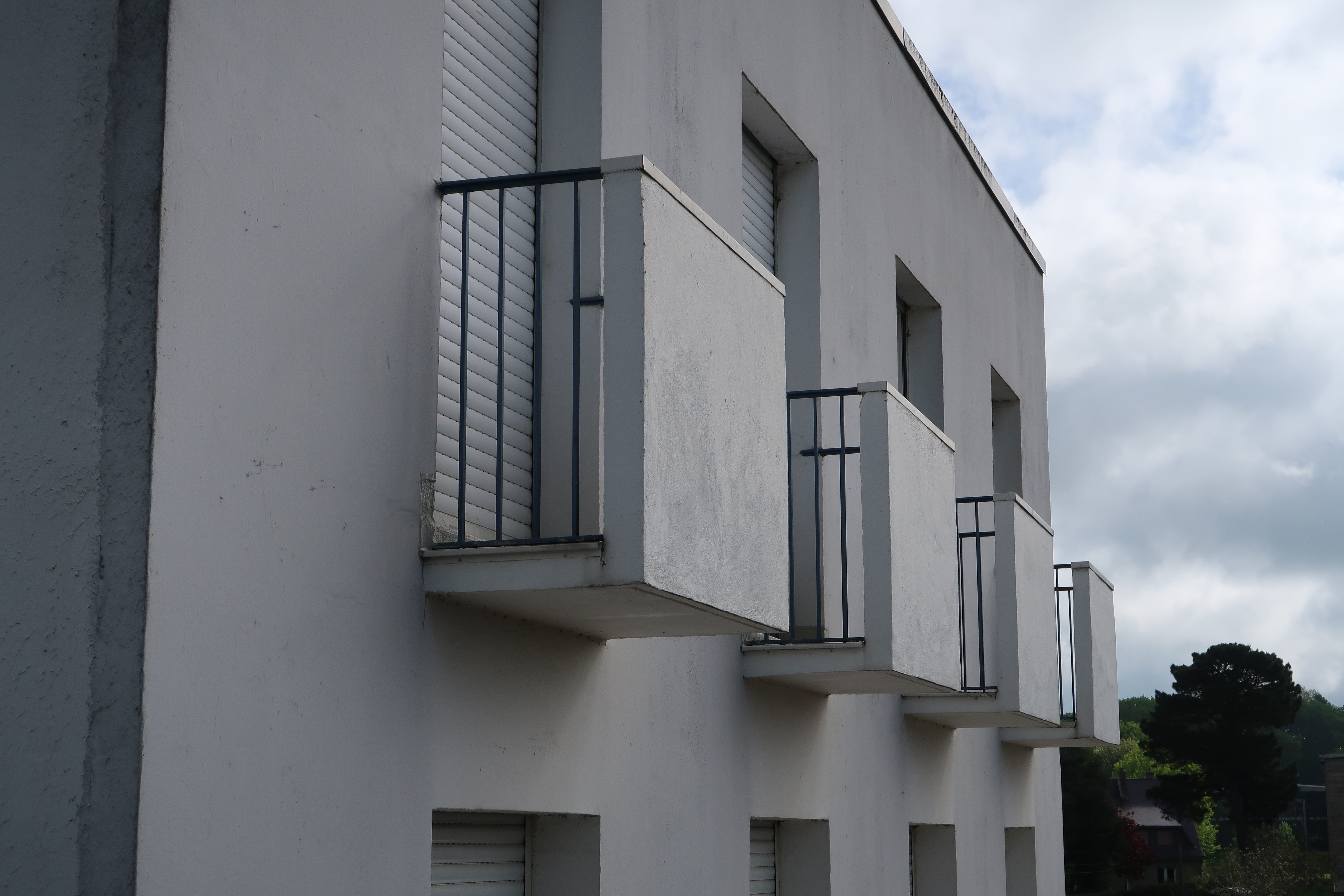 Bâtiment A, façade sud des logements de fonction, détail. Louis Arretche et Jean Monge, architectes, plans 1959.Immatriculation
