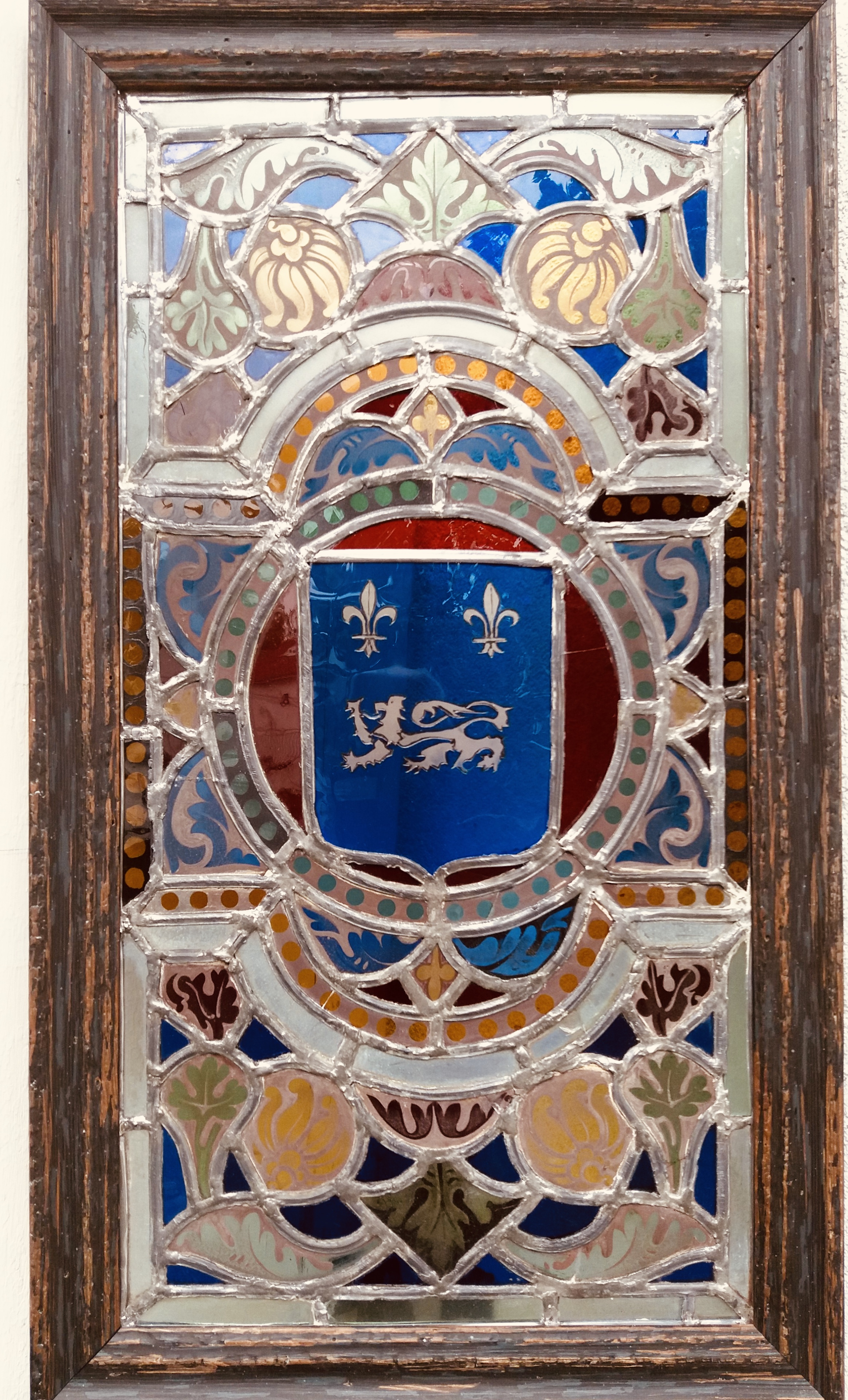 Vitrail d'une porte aux armes des Guéhenneuc.Immatriculation