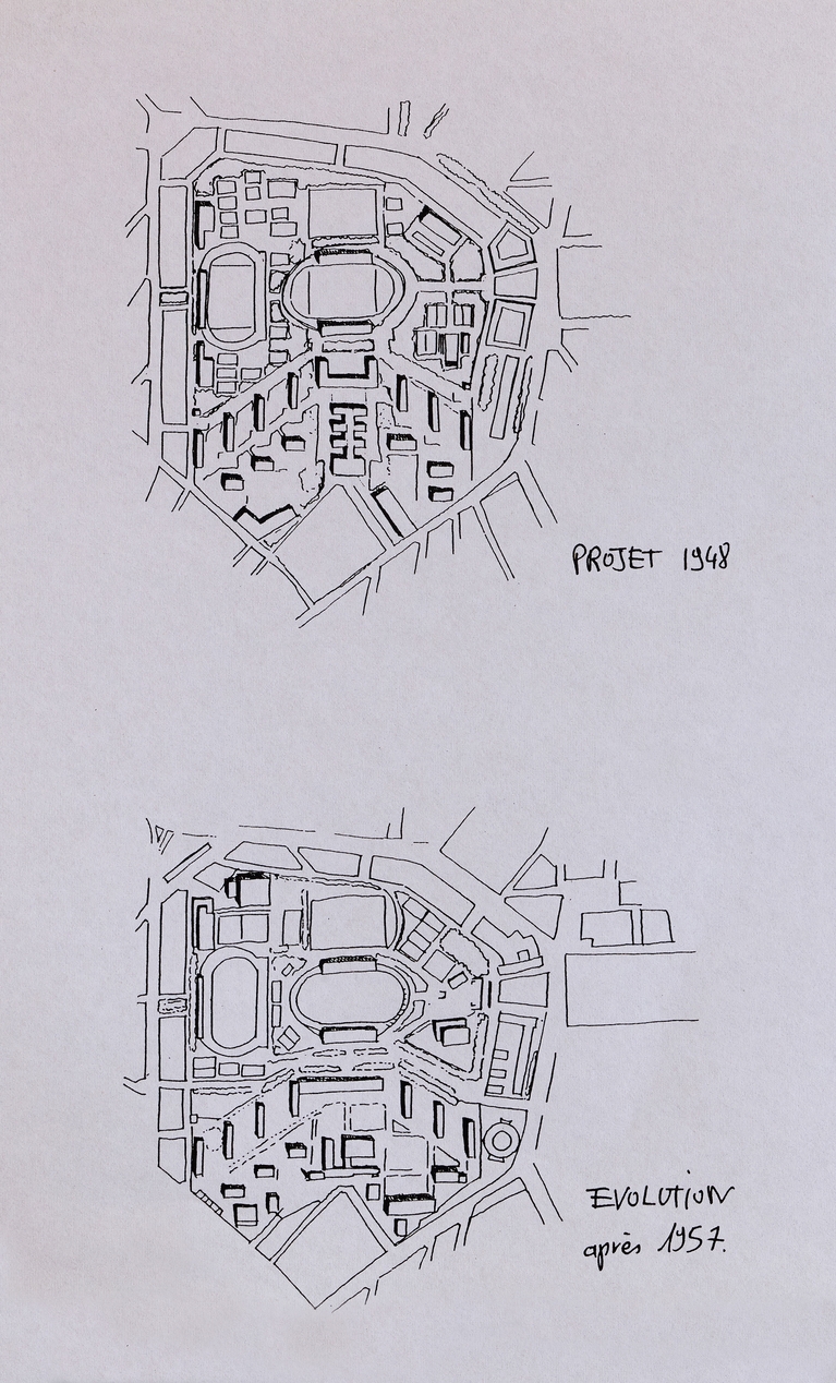 Dominique Richard, architecte : comparatif des plans masse de 1948 et 1957.Immatriculation
