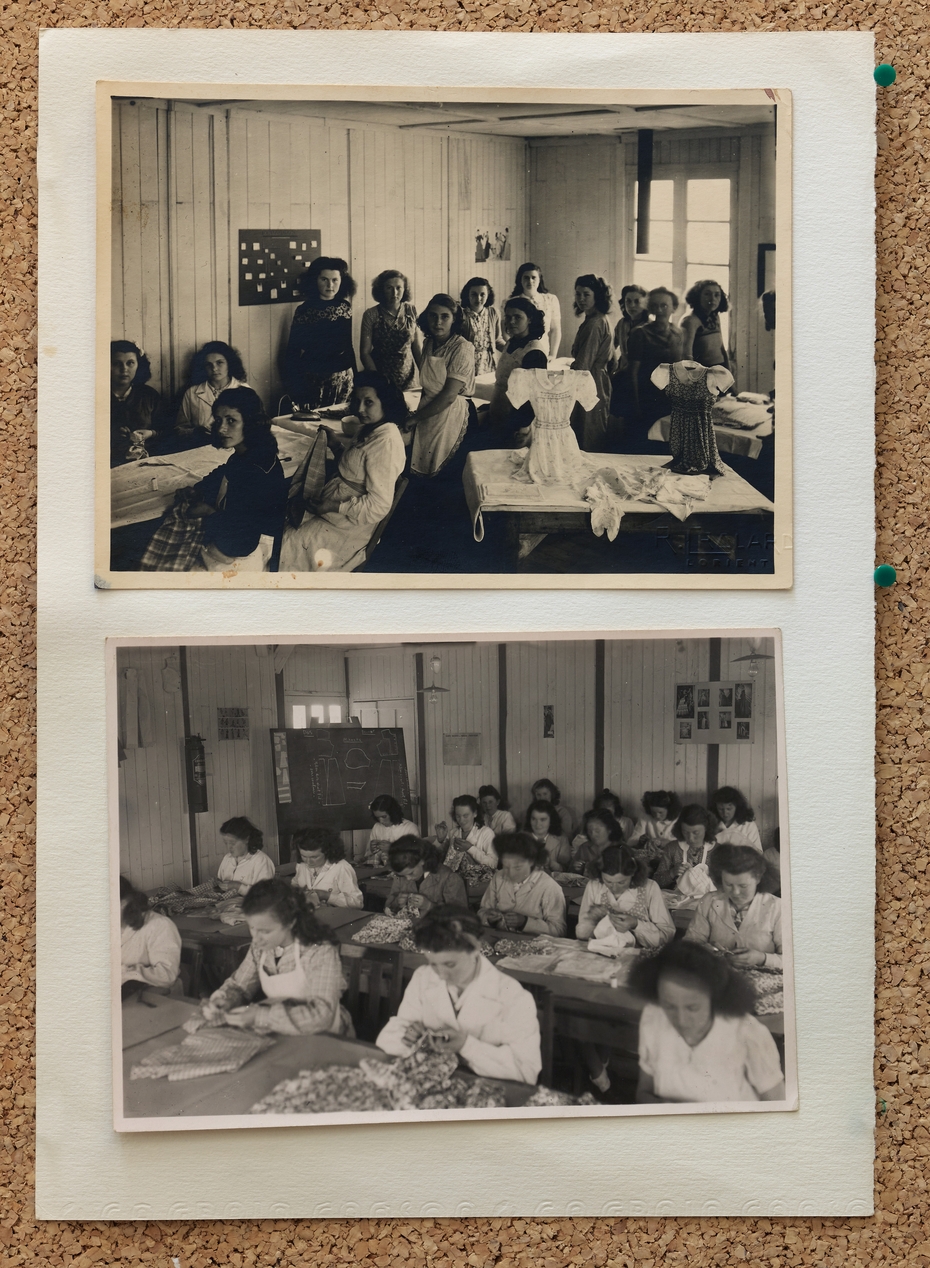 Archives du lycée Marie-Le-Franc : Album de photographies du centre d'apprentissage féminin à l'époque des baraques, sn, sd (ca. 1946-1961) et après son installation boulevard Léon Blum (ca.1961).
