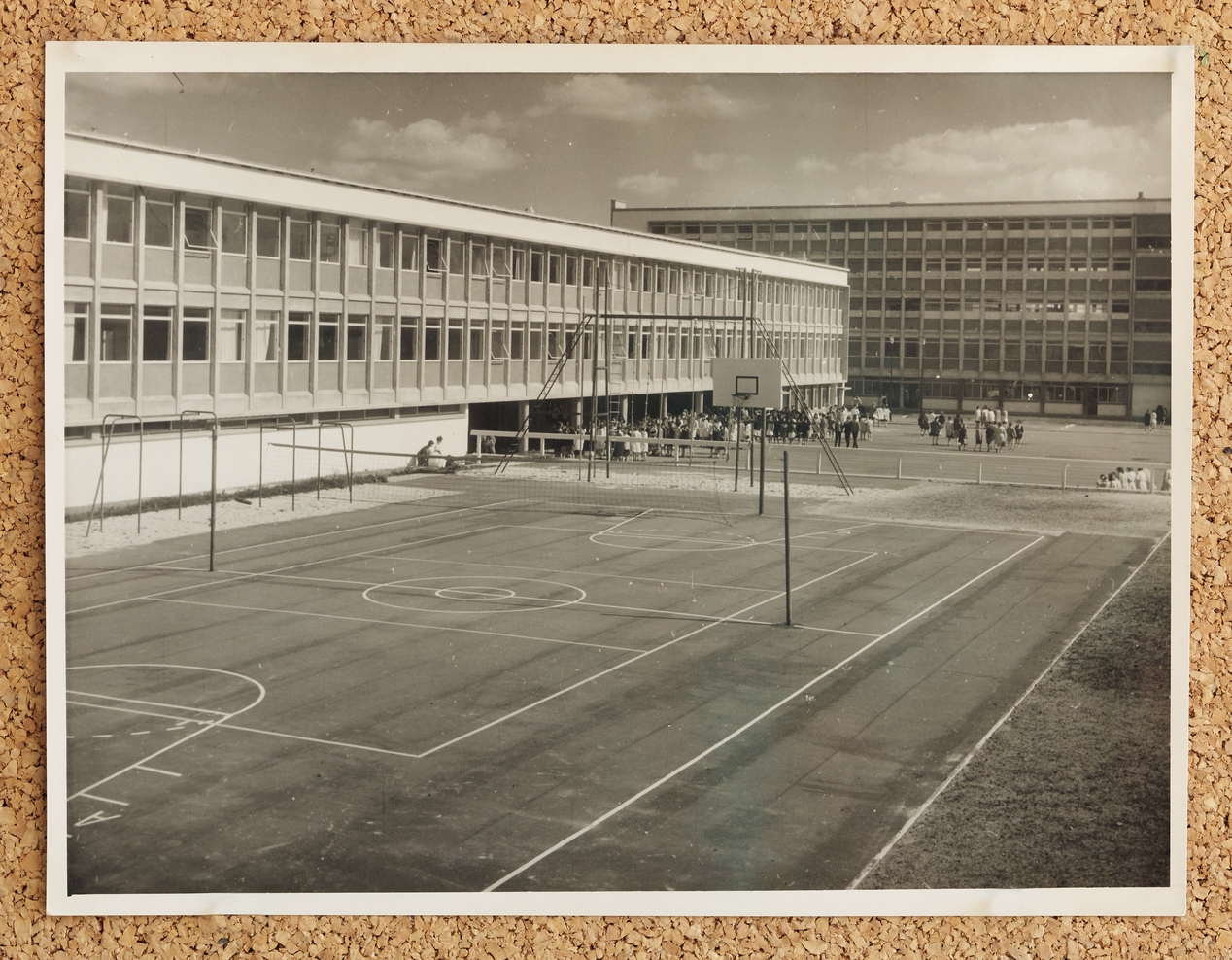 Archives du lycée Marie-Le-Franc : Album de photographies du centre d'apprentissage féminin à l'époque des baraques, sn, sd (ca. 1946-1961) et après son installation boulevard Léon Blum (ca.1961).
