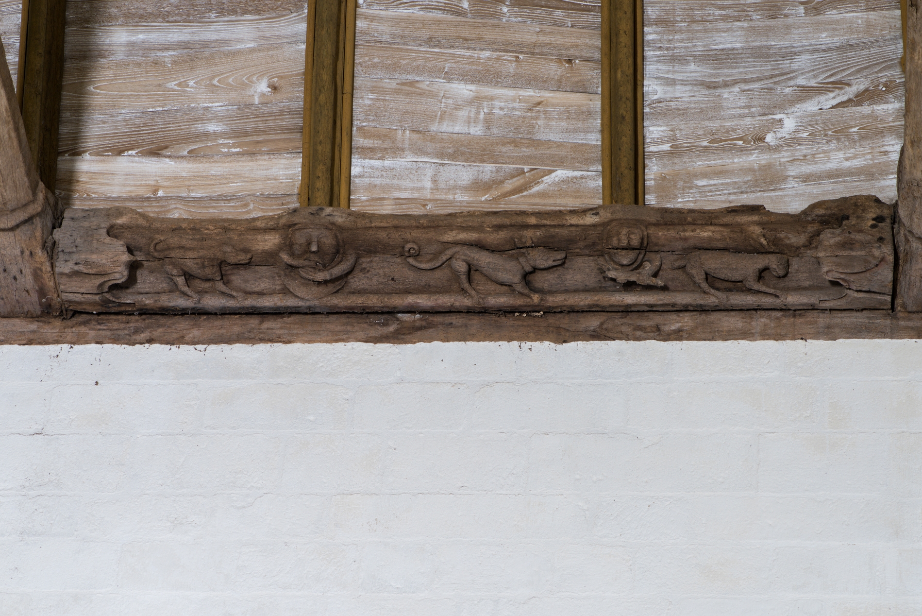 Vue détail : une sablière sur le mur sud de la chapelle.Immatriculation