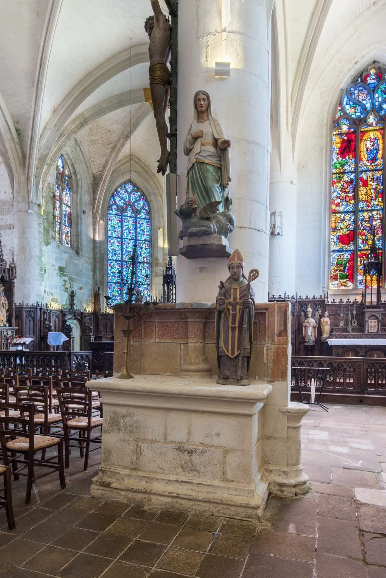 Vue de détail : pilier sud-ouest de la croisée du transept, à la jonction de la nef et du transept.Immatriculation