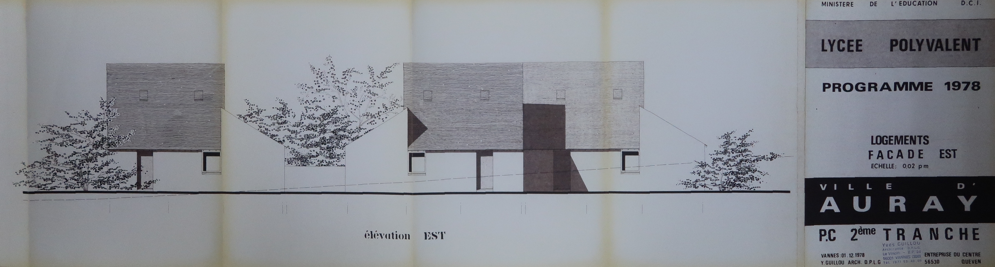 Logements façade est. Yves Guillou, architecte. 01/12/1978.Immatriculation