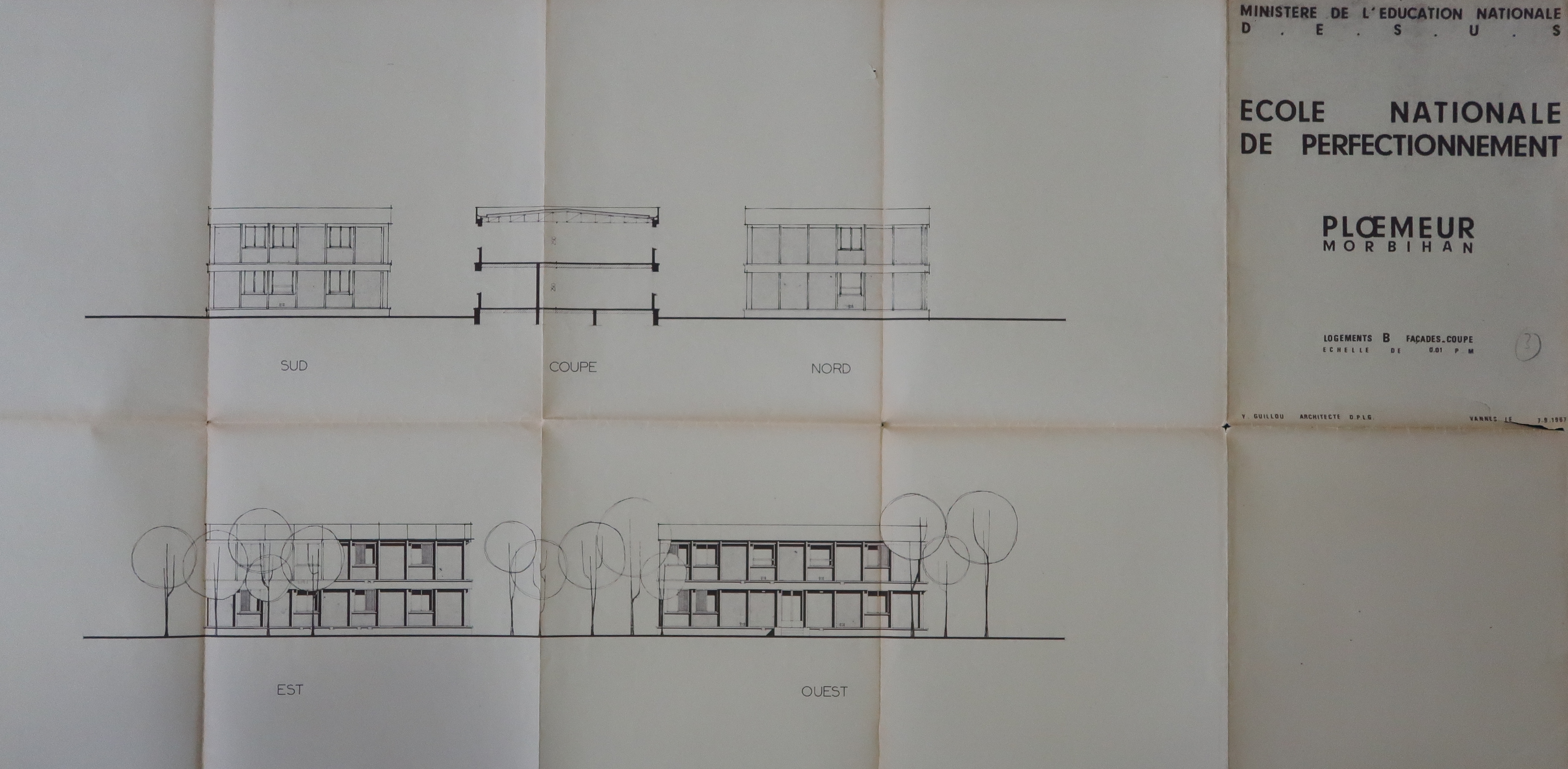 Archives de l'EREA Les Pins de Ploemeur (56). Guillou [Y.], Jeu de plans de l’École nationale de perfectionnement, 7/9/1967