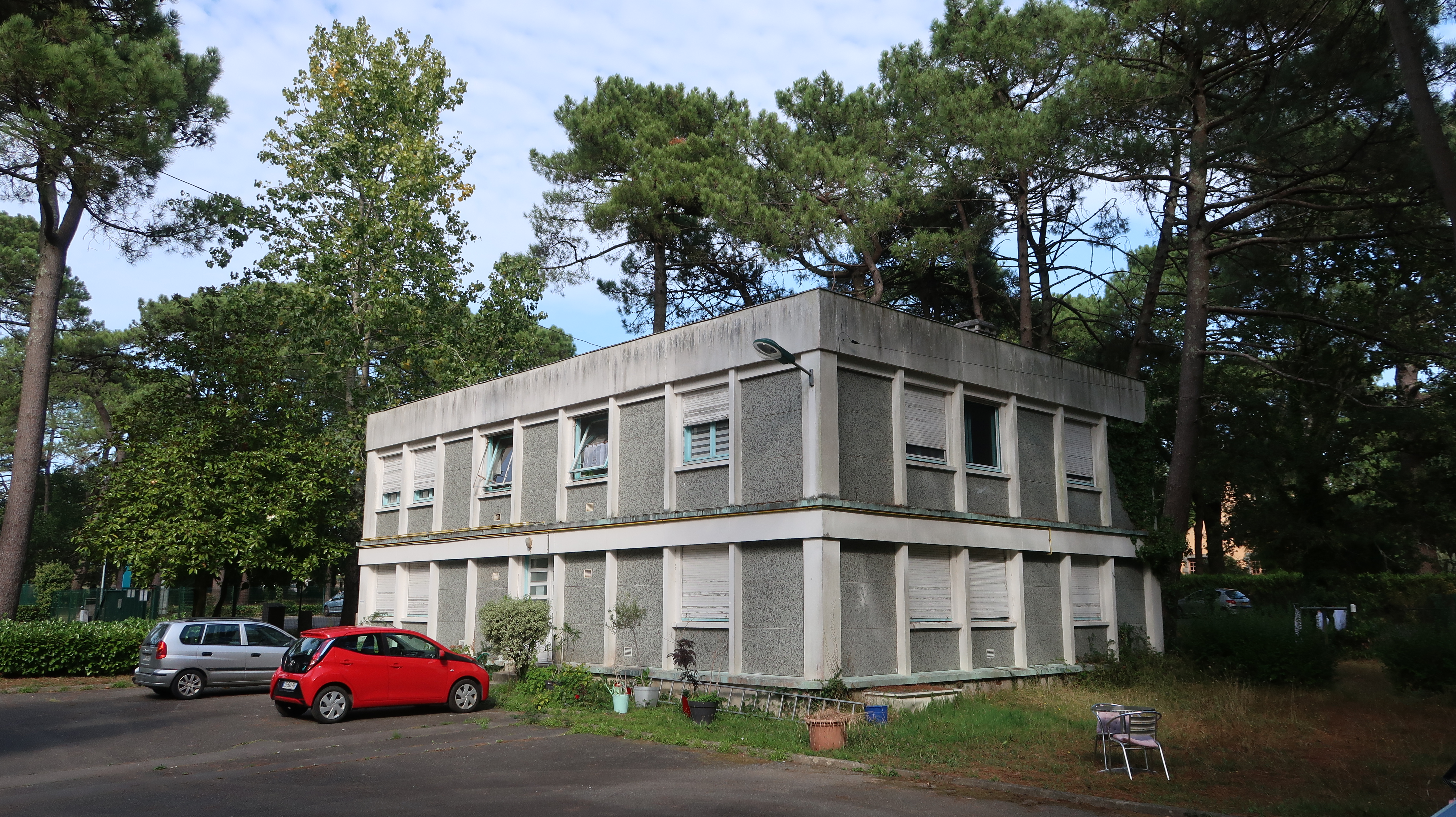 Logements B (ou 2). Angle sud-ouest. Yves Guillou, architecte, 1969.Immatriculation